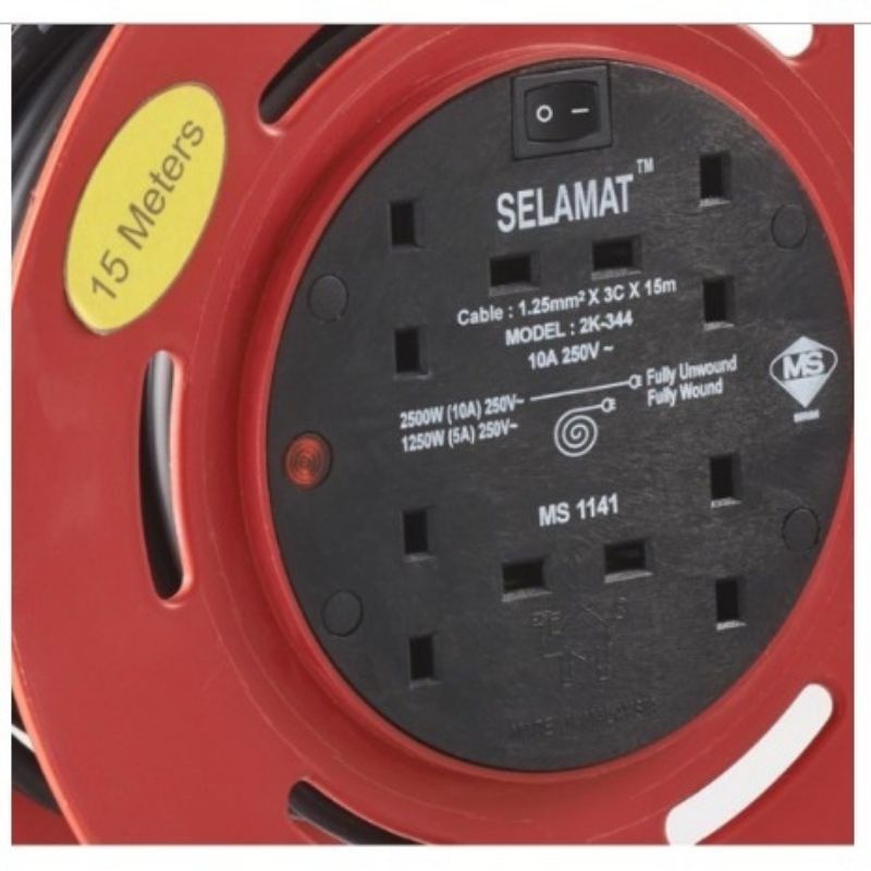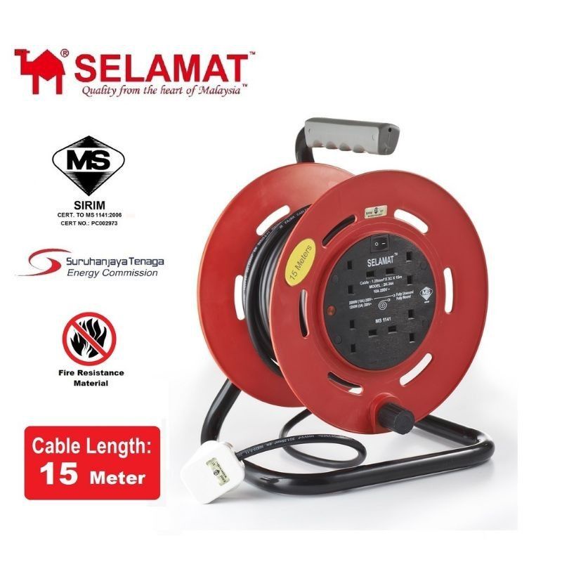 15 Meters - SELAMAT Premium 4 Gang Extension Industrial Type Portable Cable Reel Rolling Durable(MURAH)