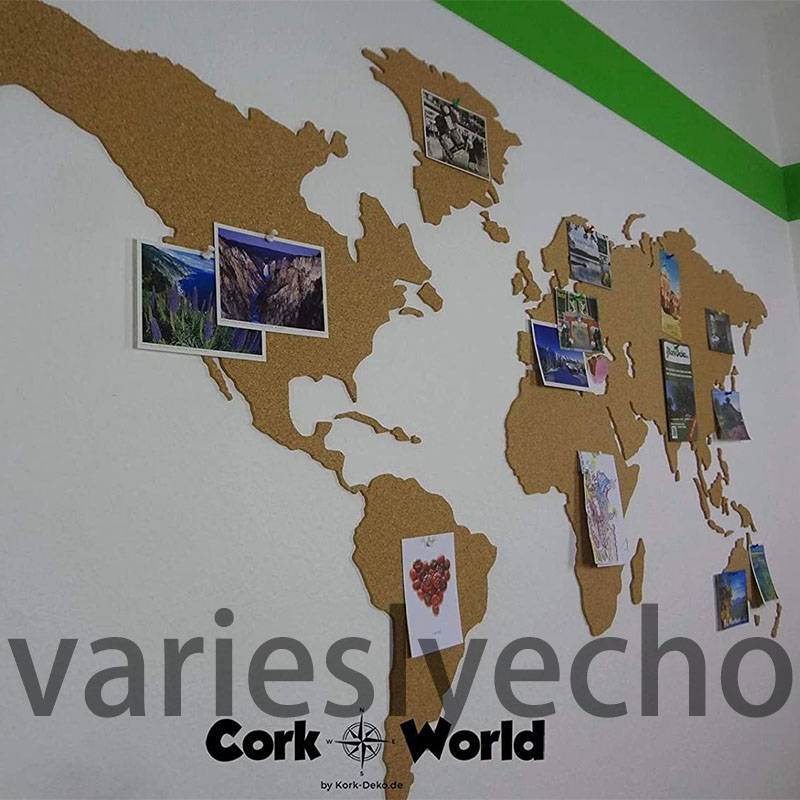 15 Pieces World Map Self-adhesive World Map Cork Bulletin Board with 20 Push Pins | World Map Pinboard | Wall Decoration for Globetrotters and Travelers