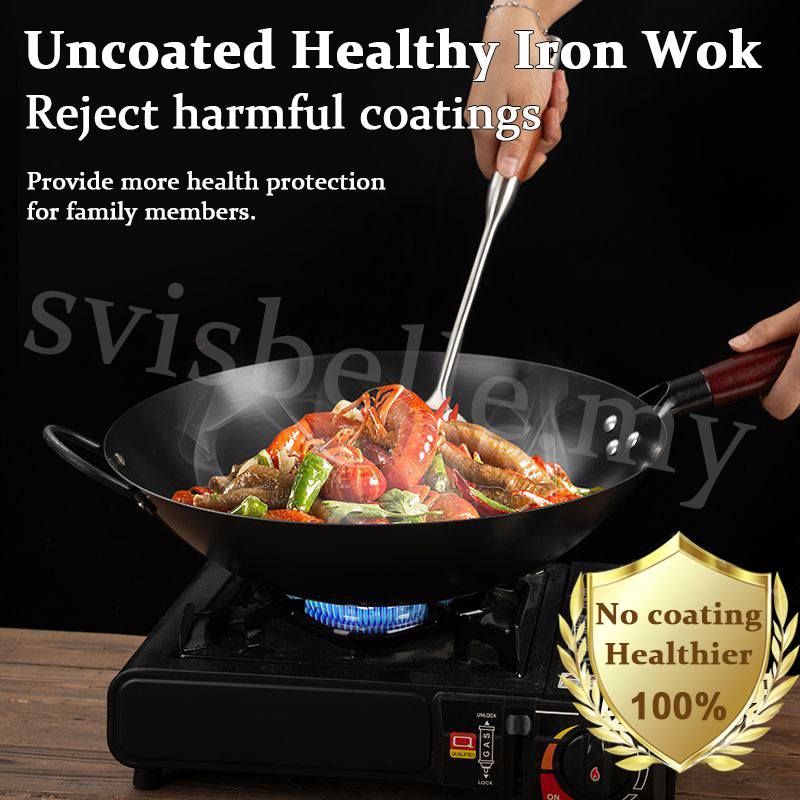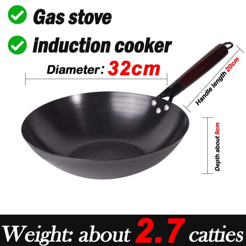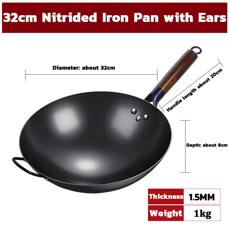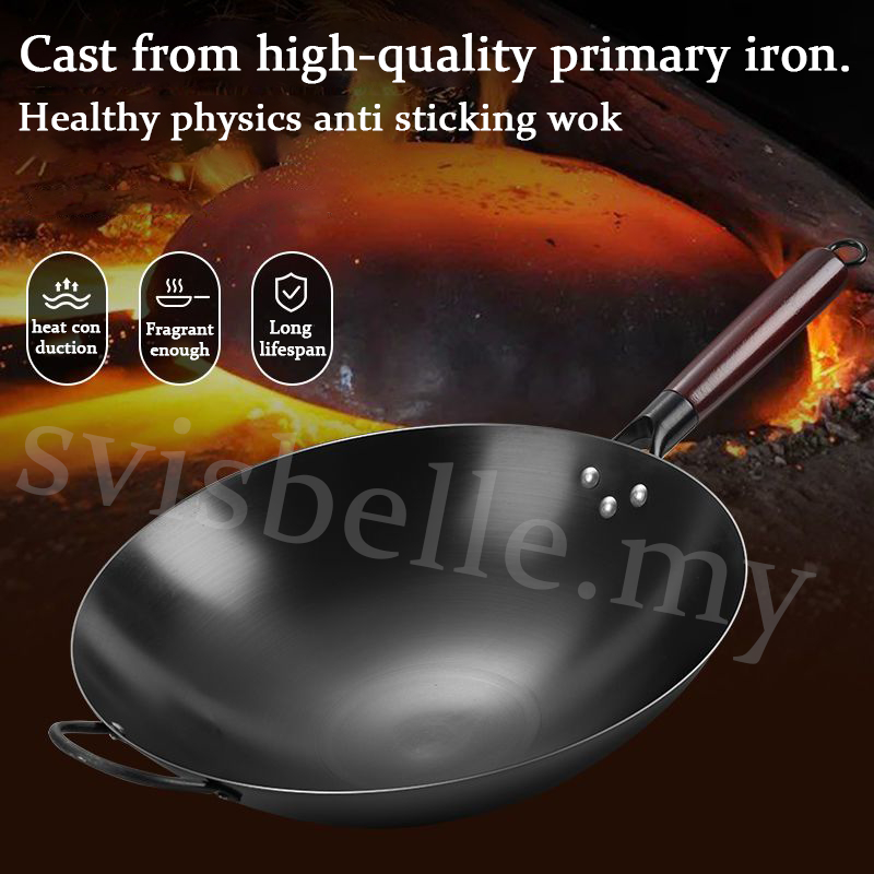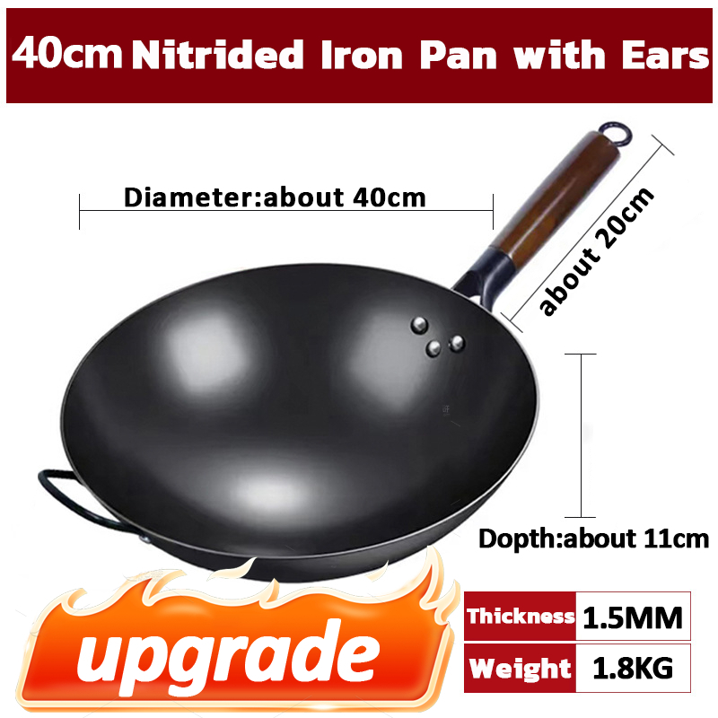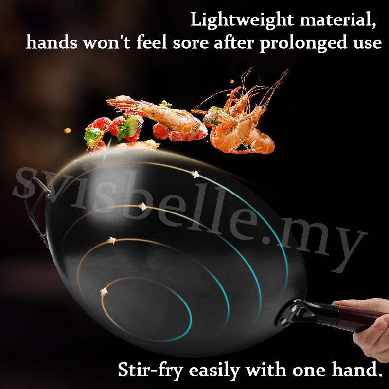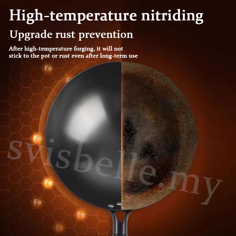 High quality Nitriding non stick wok Scratch resistant and wear-resistant kuali non stick cookware wok non stick cast iron wok kuali hitam tak melekat 鐵鍋
