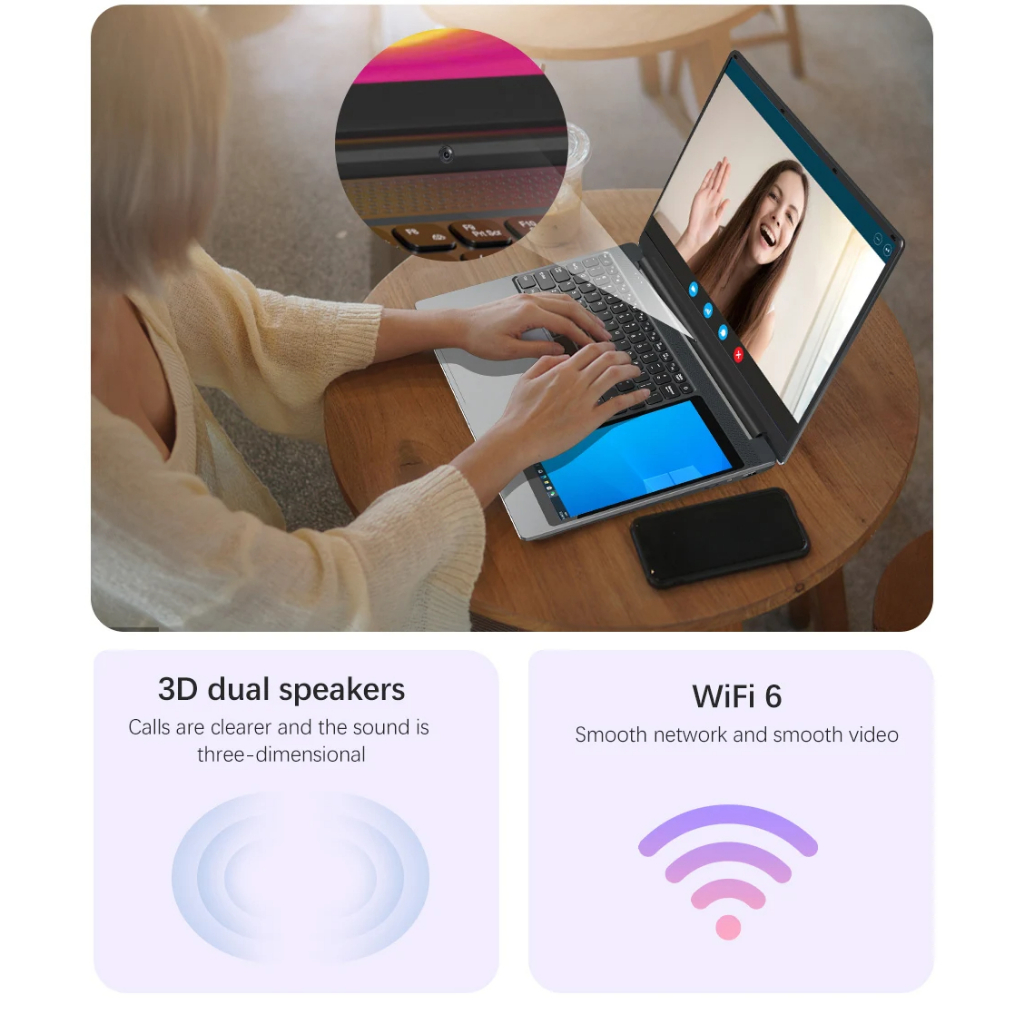 15.6inch +7inch IPS Dual Touch Screen Laptop Intel N100 32GB 1TB Windows11 WiFi6 BT Gaming Notebook
