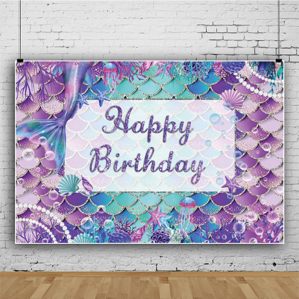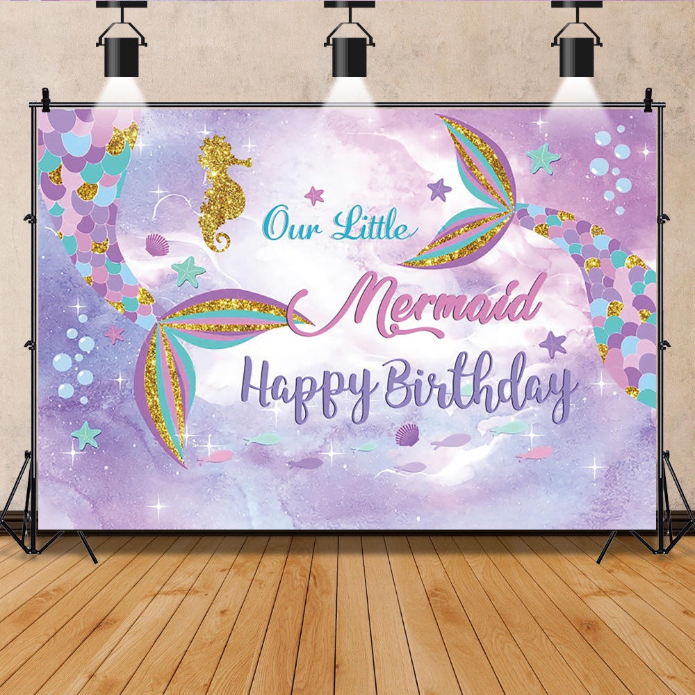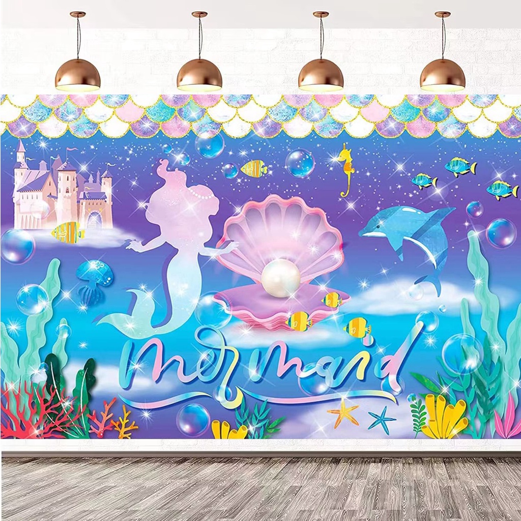 150*100cm Mermaid Theme Party Backdrop Cloth Under The Sea Photography Background Happy Birthday Party Decorations