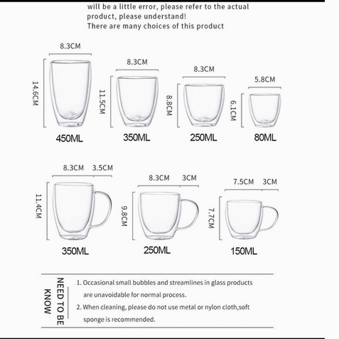150-450ml Double Clear Glass Coffee Cup Water Mug Double Wall Insulated Handle Drinking Cup Drinkware Drinking Mugs 150-450ml 双层透明玻璃咖啡杯水杯双壁保温把手饮水杯饮具饮水杯