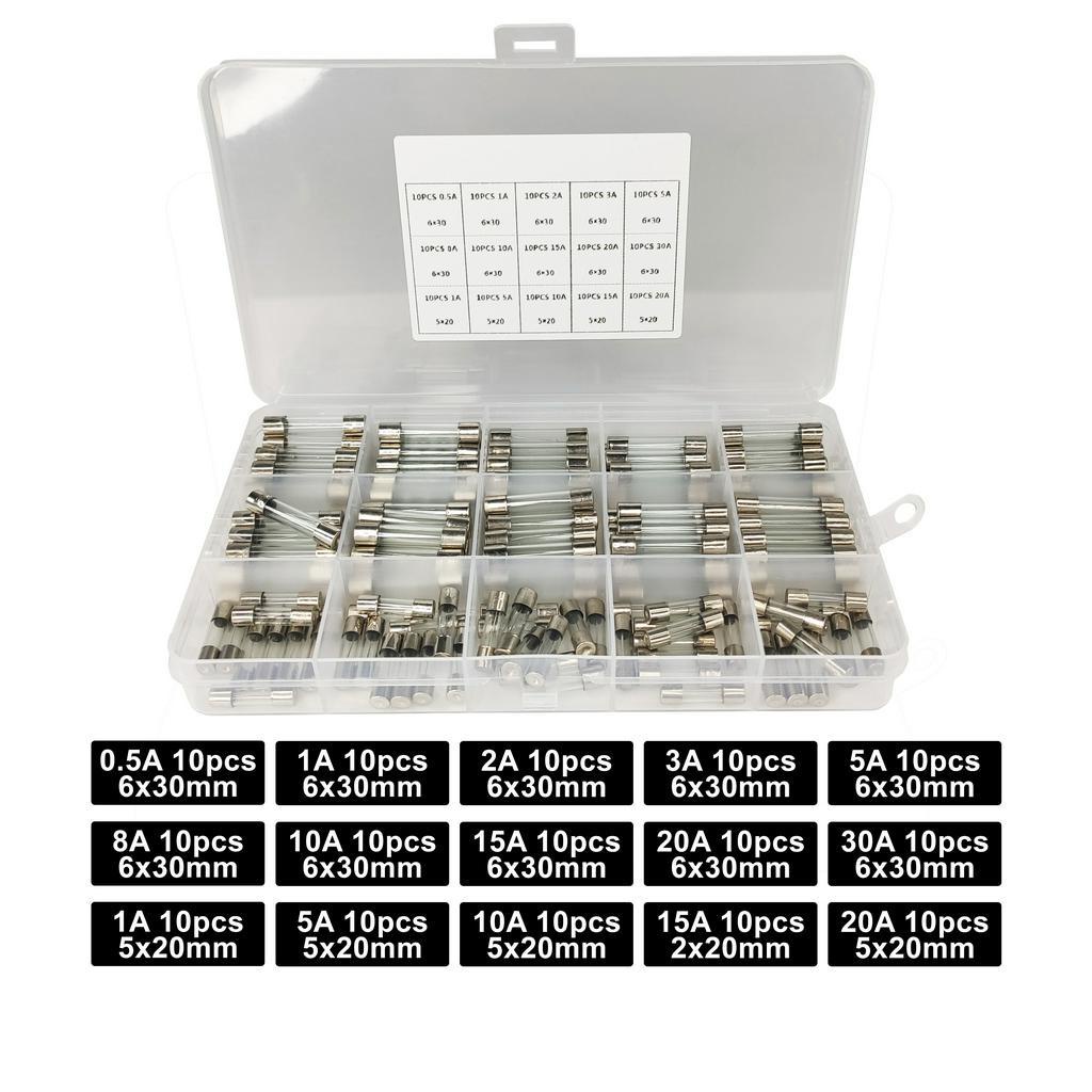 150 Pcs Glass Tube Fuse Set 0.5A-30A Fius 6x30mm 5x20mm Fast Blow For Electrical Electronic