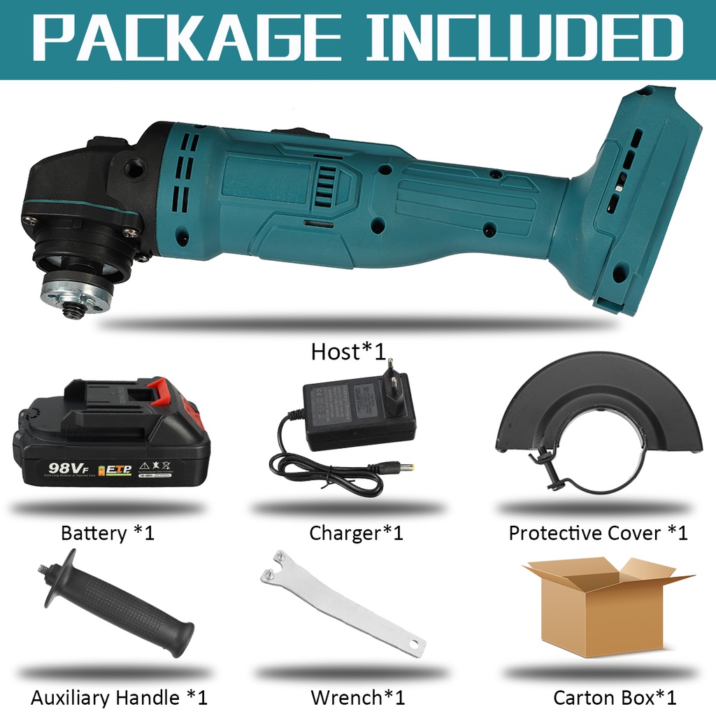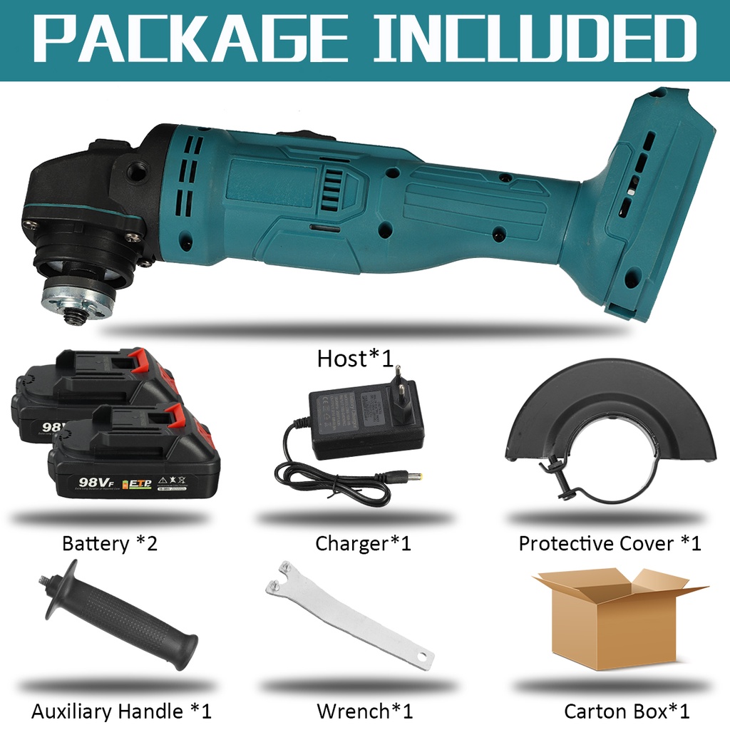 1500W 100mm 98VF Electric Cordless Angle Grinder Cutting Grinding Machine Power Tool for Makita Battery
