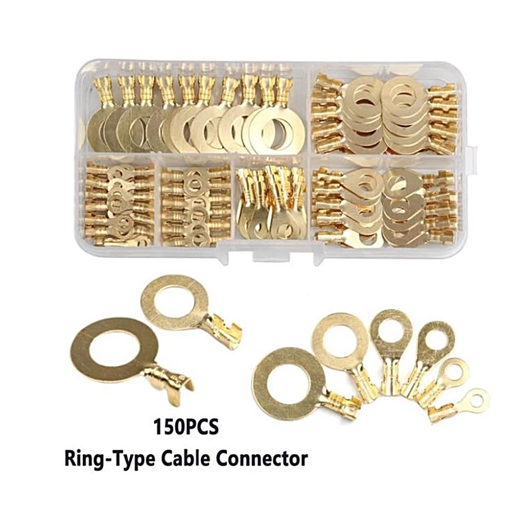 150PCS Electrical Wire Ring Cable Lugs Terminals Connectors M3 M4 M5 M6 M8 M10 Ring Eyelets