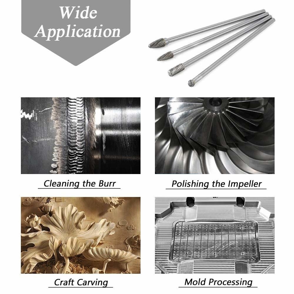 150mm 1/4 Carbide Burr Long Shank Set Carving Grinder Abrasive Tools Rotary Burr Long Shaft Rasp File Milling Cutter Wood Metal