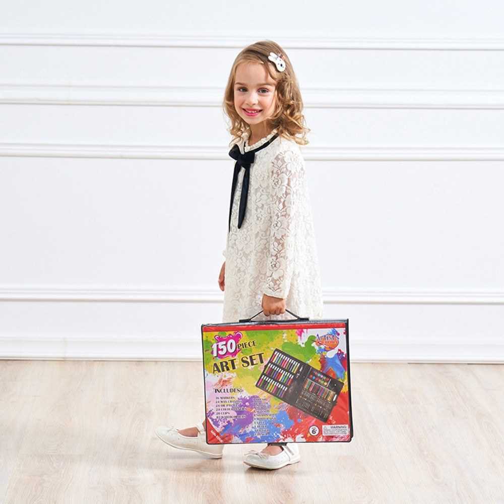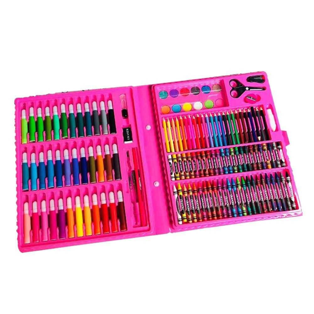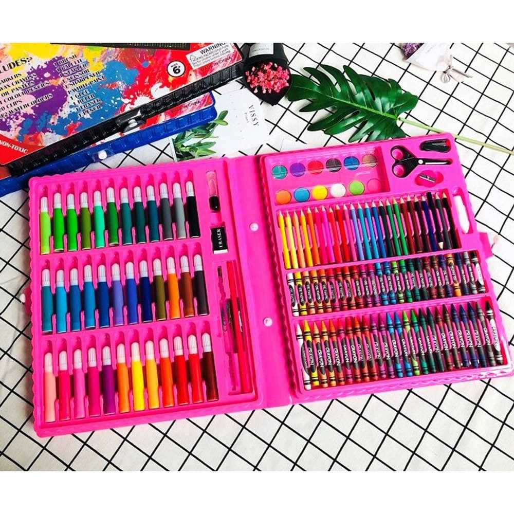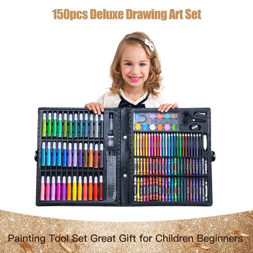150pcs Deluxe Art Set Drawing Art Box with Markers Color Pencils Crayons Oil Pastels Watercolor Cakes and Accessories P