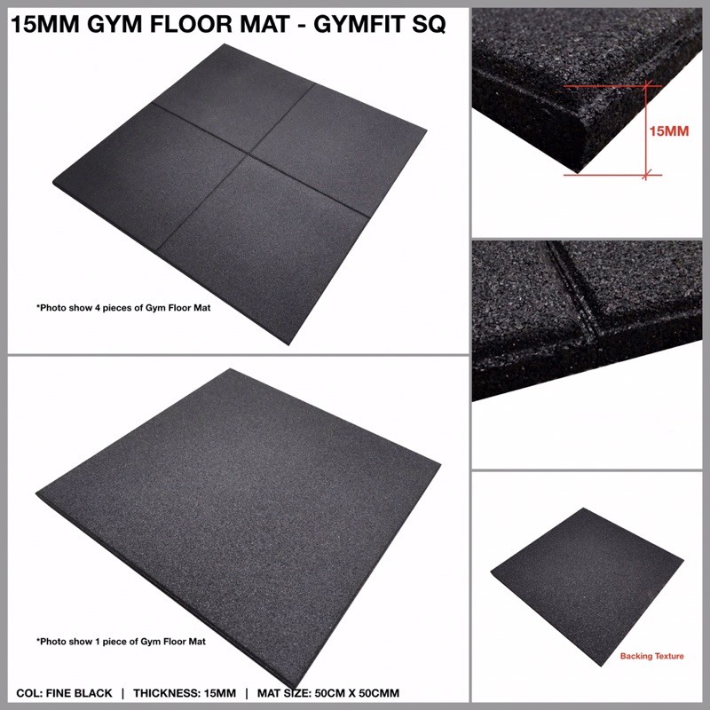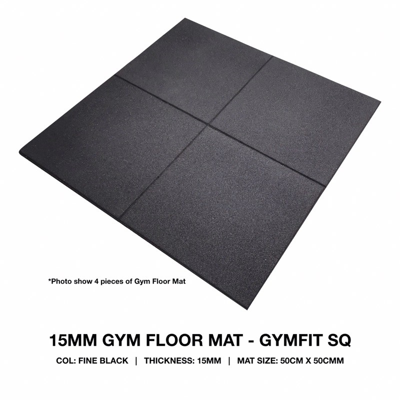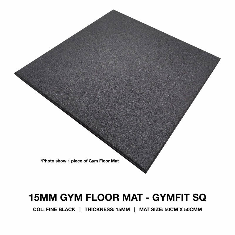 15MM RUBBER GYM FLOOR MAT - GYMFIT / 50CM X 50CM/ SUITABLE FOR GYM USE