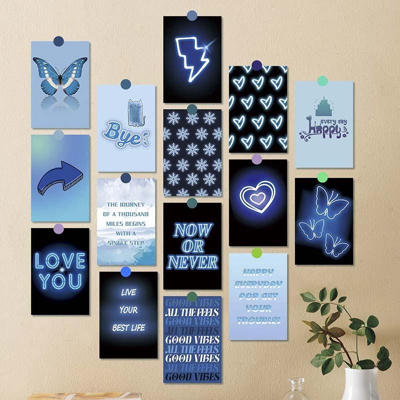 15PCS Blue Wall Collage Kit Aesthetic Pictures, Bedroom Decor for Teen Girls, Wall Collage Kit, Collage Kit for Wall Aesthetic, Aesthetic Posters, Collage Kit