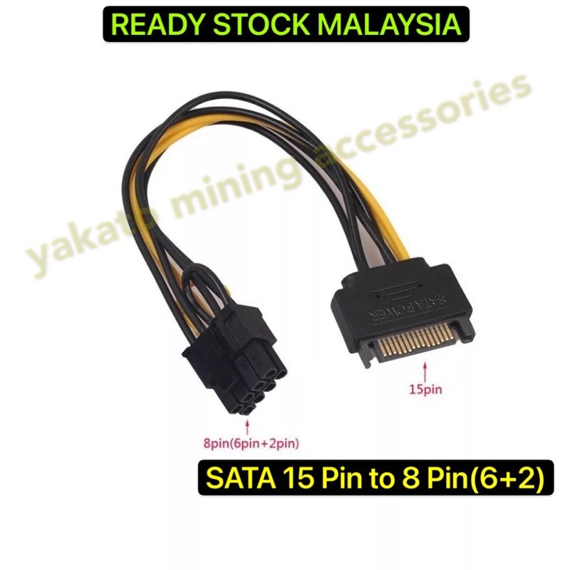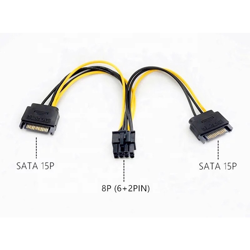 15Pin SATA Male to 8Pin (6+2 Pin) PCI-Express Female Video Card Power Adapter Cable 15cm SATA to 8 pin PCIE