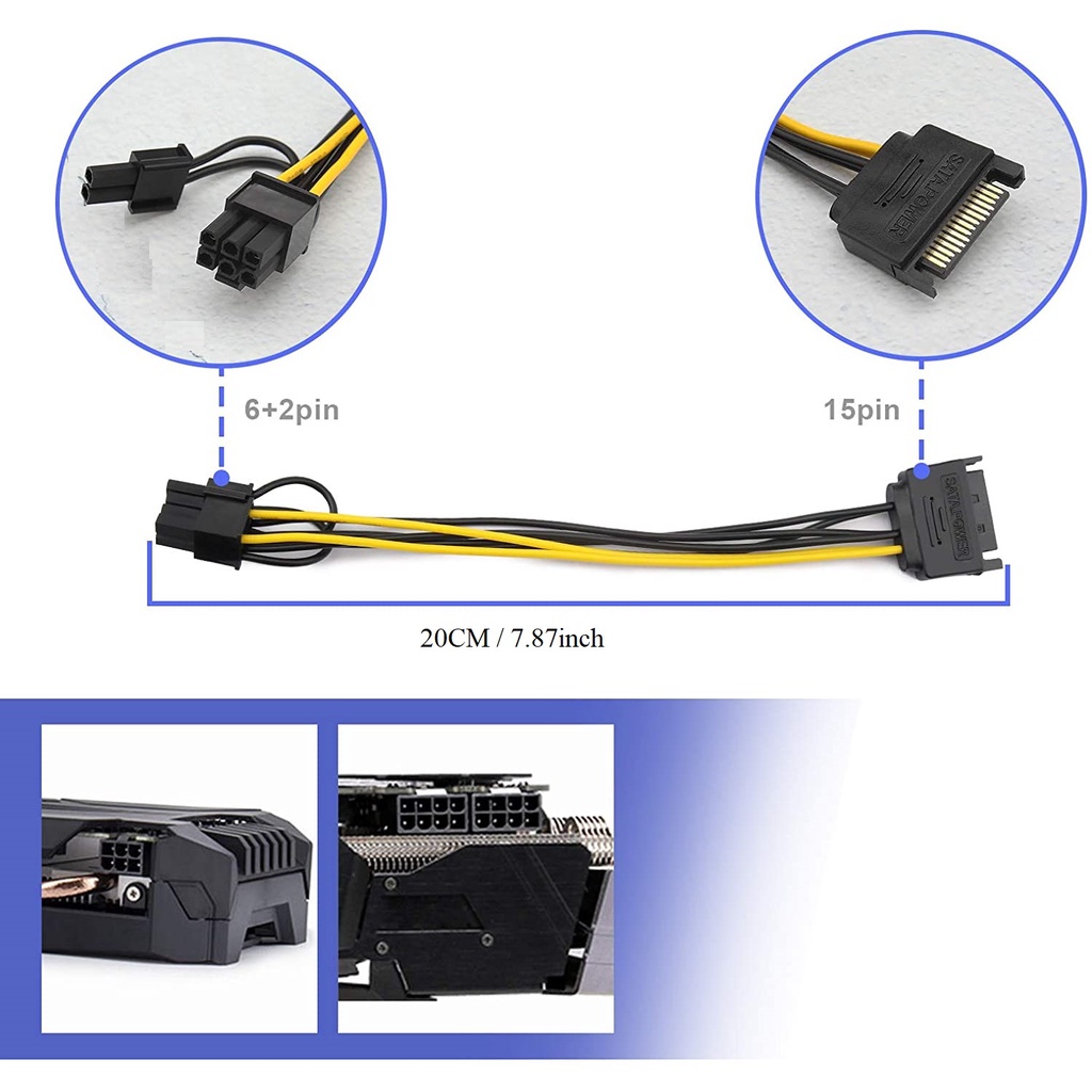 15Pin Sata Male To 8Pin(6+2) Pci-E Power Supply Cable 15-Pin To 8 Pin Cable <READY STOCK>