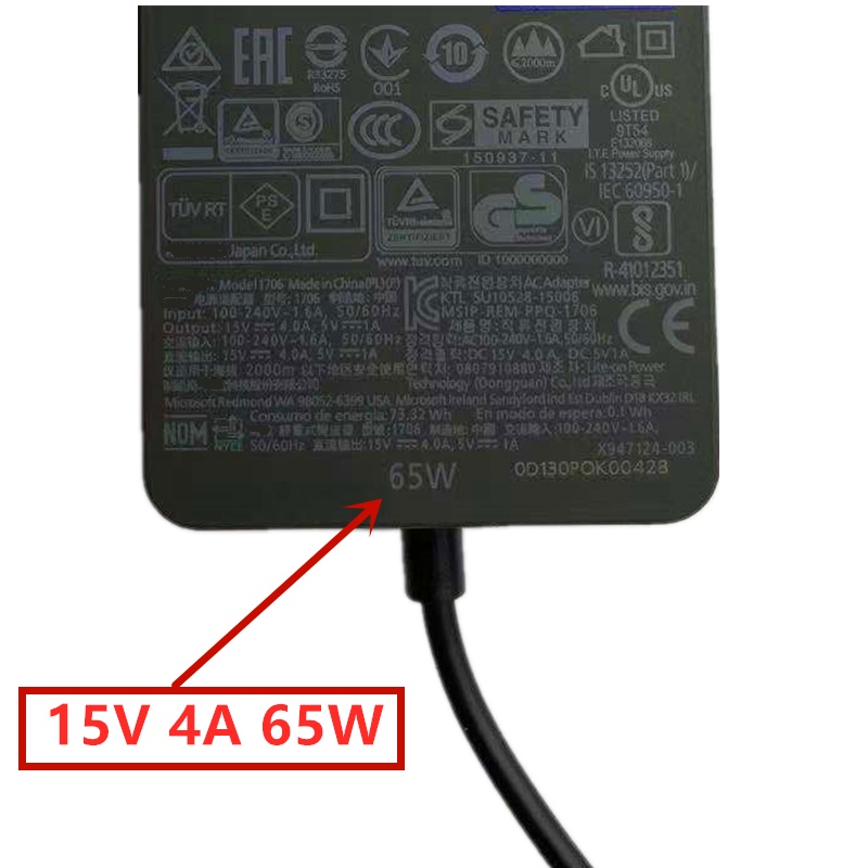 15V 4A 65W For Microsoft Surface pro 3 pro 4 pro 5 pro 6 pro 7 Surface Pro 8 2021 Book Laptop Go Power Adapter 1706 1866 1867 Charger 5V1A