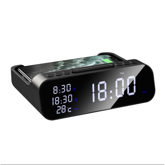 15W Wireless Charger Alarm Clock Bluetooth Speaker LED Smart Digital Clock Table Electronic Desktop Clocks USB Fast Charger