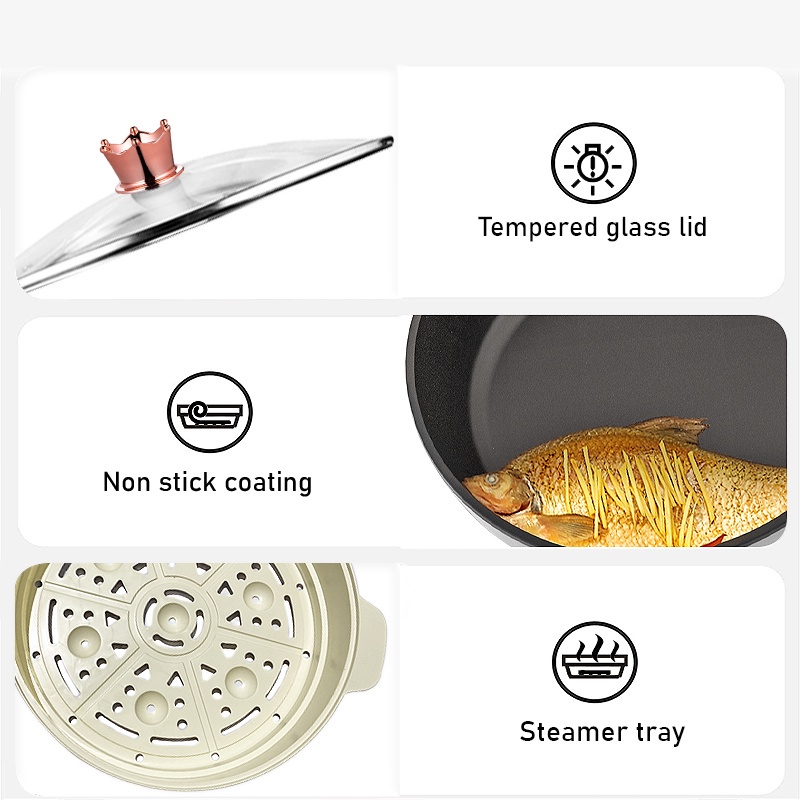 DESSINI ITALY Electric Cooker Steamboat Hot Pot Non Stick Frying Wok Pan Rice Cooker with Steamer Periuk Masak Elektrik