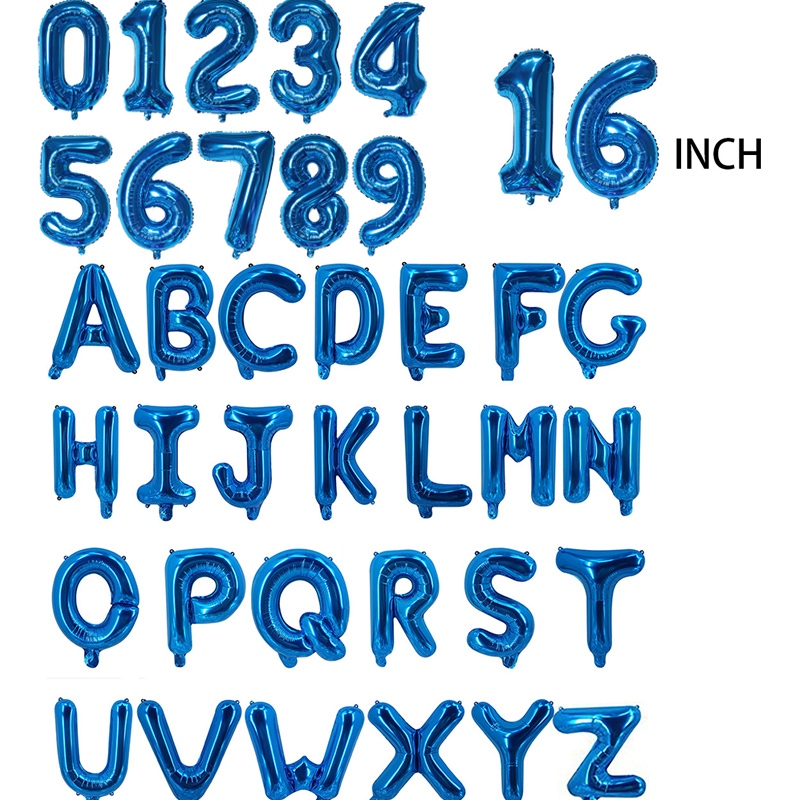 16 inch Blue Number Blue Letter Balloon Wedding Decoration Balloon Children Birthday Decoration Aluminum Foil Balloon Party Supplies Scene Layout (A-Z)