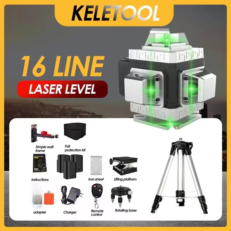 16 line Green Laser Level Self-Leveling 360 Degree Horizontal Vertical Cross Lines Laser Line with Tripod Outdoor