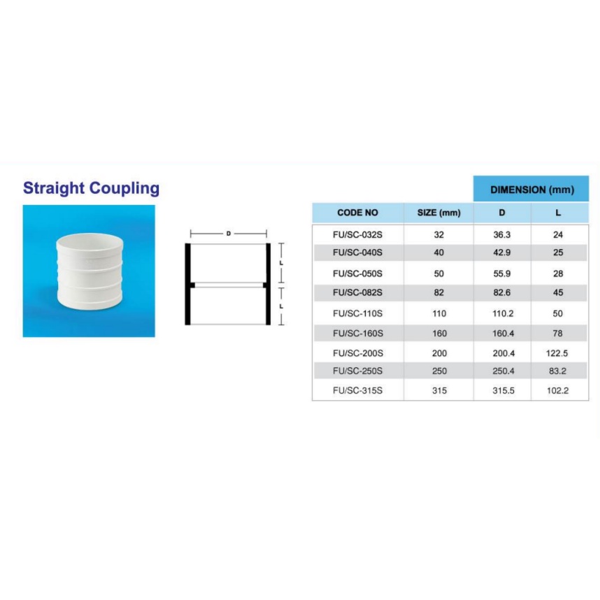 160mm ( 6" ) UPVC STRAIGHT COUPLING USC160