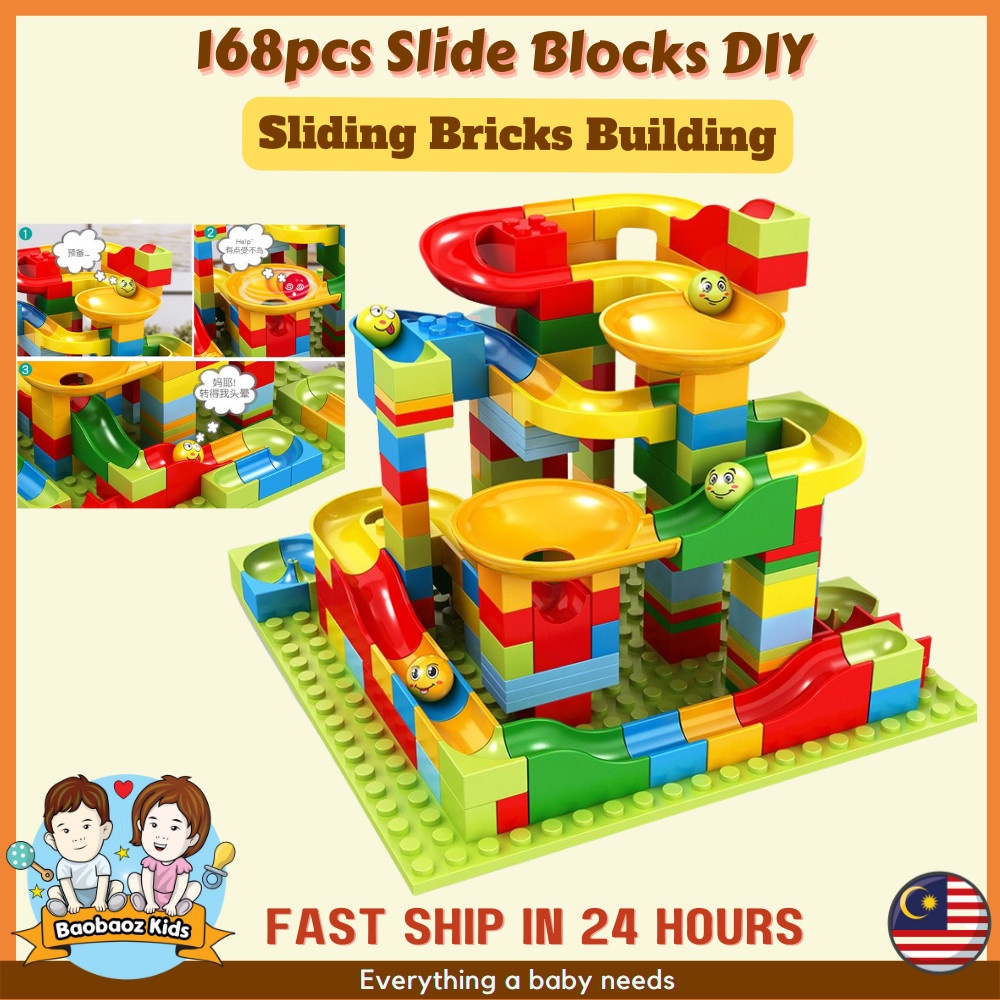 168pcs Slide Blocks DIY Bricks Building Sliding Educational Early Learning Block Puzzle Toy Mainan Budak