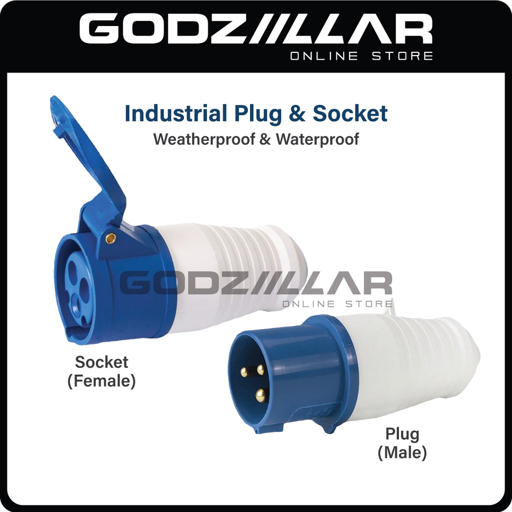 16A 3-Pin Industrial Plug & Socket | Male Plug & Female Socket & 3-Ways Connector Socket | Weatherproof & Waterproof