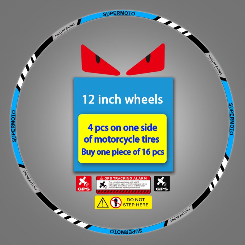 16PCS 10"12"17"18" Reflective Motorcycle Wheel Sticker Rim Strip Hub Tape Tire Decal Racing motocross MOTOGB