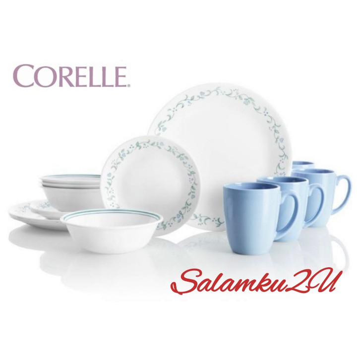 16PCS CORELLE LIVINGWARE DINNER SET/SET PINGGAN MANGKUK PIRING CAWAN CORELLE