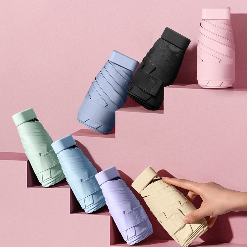 16cm Mini Pocket Umbrella Foldable Small Weatherproof Sun Umbrella Protection Travel Beach 50% UV Block Fibre