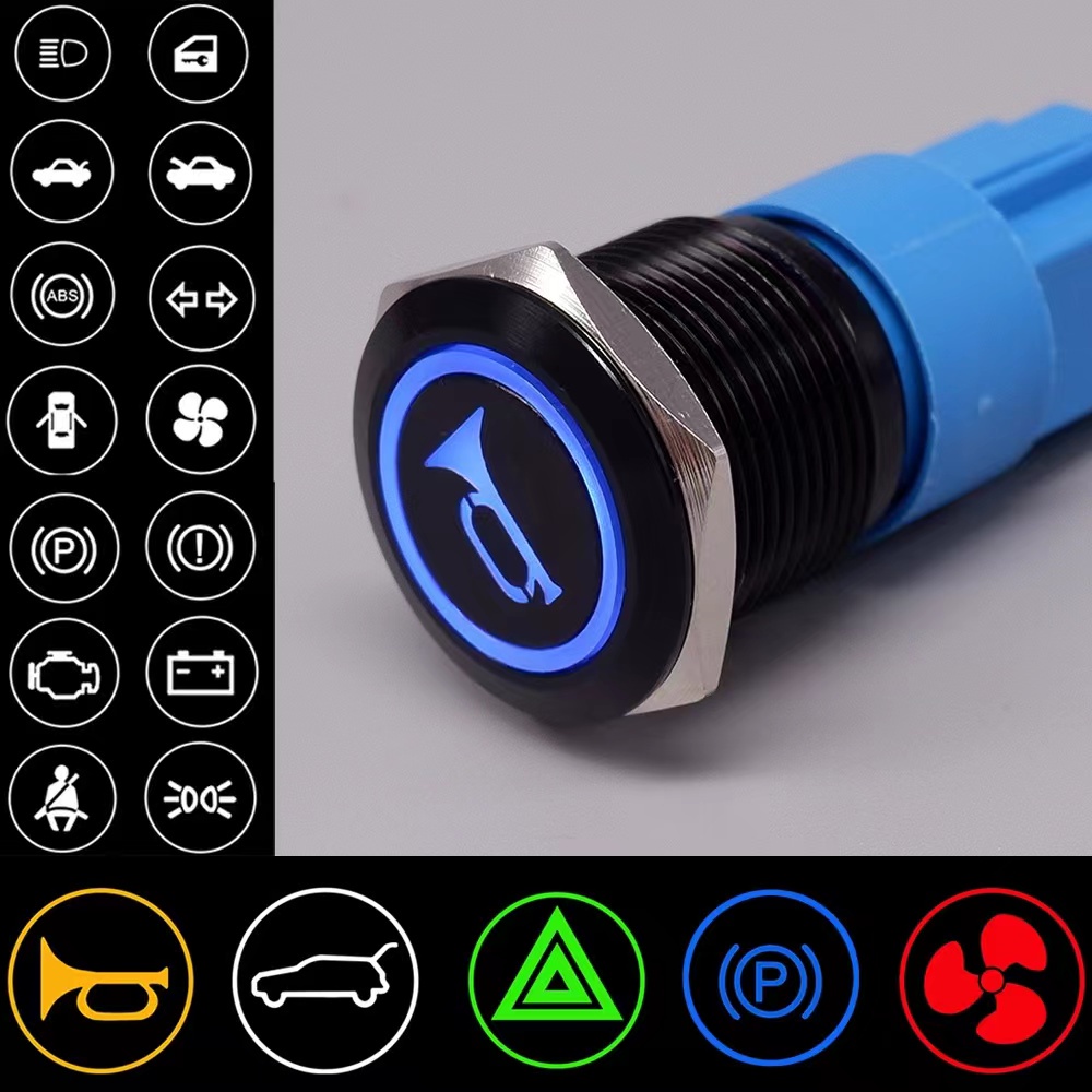 16mm/19mm/22mm 12V 24V 6V 220V Customized metal button LED Light Metal Push Button Switch Momentary Latching Type Power Button NO NC Red Blue 24V 36V 48V 110-220V