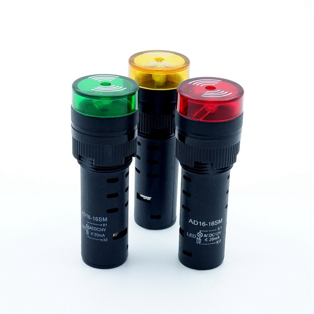 16mm Buzzer Flashing Light Signal Lamp Red LED Warning Siren Buzzer Beep Safety Alarm Sound Indicator 12V 24V 220V Green Yellow
