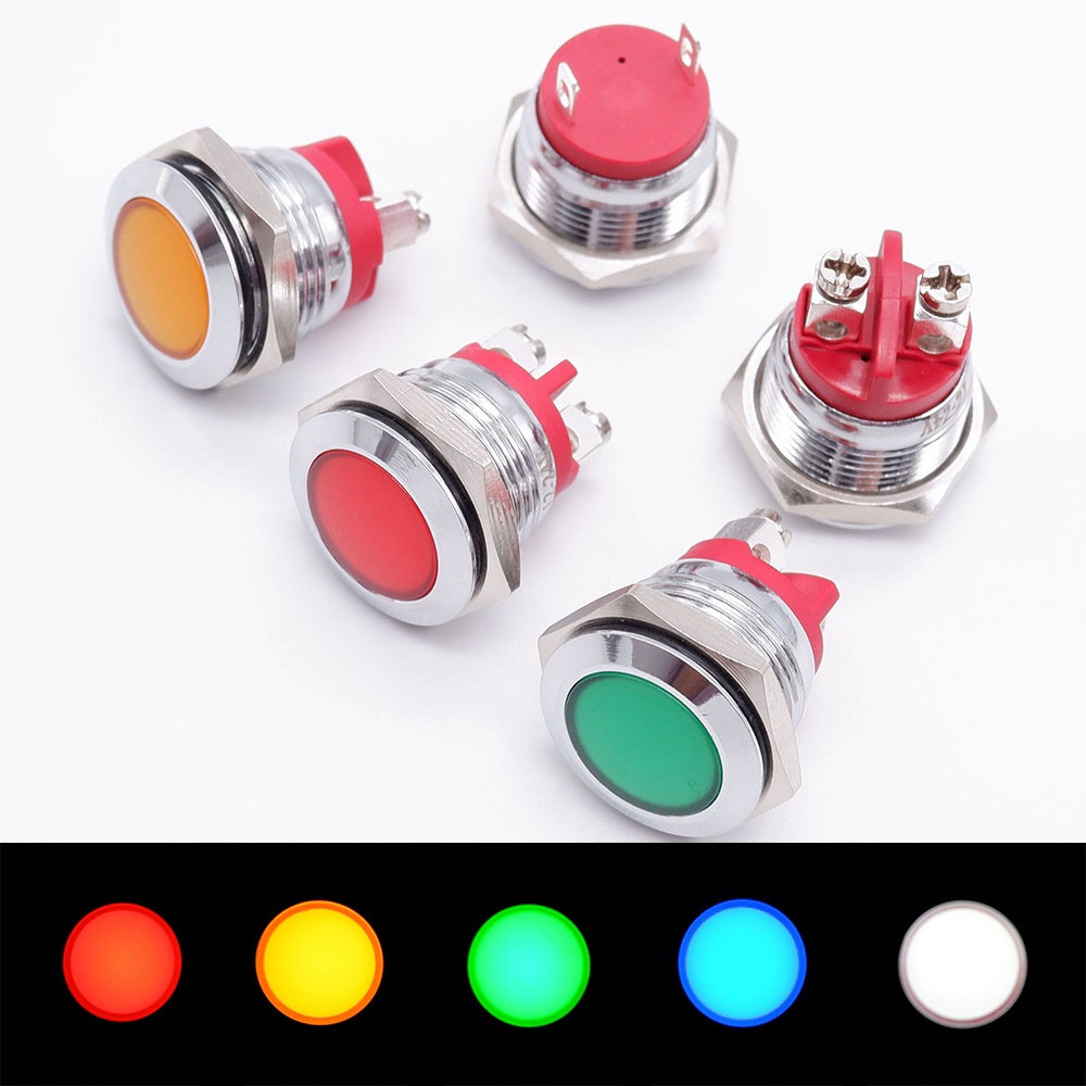 16mm Metal Indicator Light No Wire LED Warning Indicator Round Signal Lamp Pilot 3V 6V 12V 24V 220V Screw Terminal/Pin Terminal