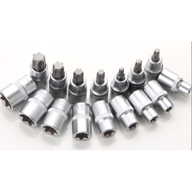 16pcs 1/2" Inch DR. Torx Bit Socket & E-Torx Socket Set T30 T40 T50 T55 T60 T70 E10 E11 E12 E14 E16 E18 E20 E22 E24