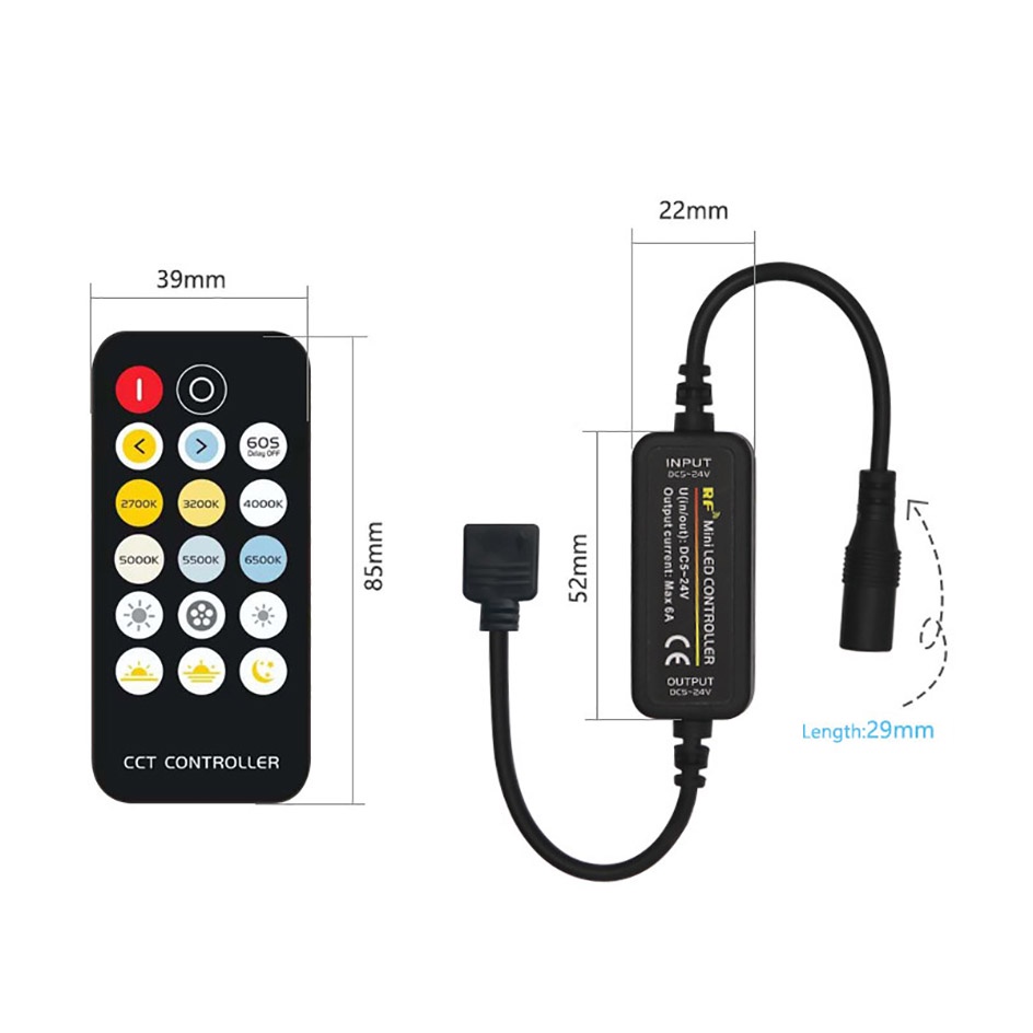 17-Key CCT LED Controller for 12V 24V LED Strip Light Work with Wireless Remote Control COB LED Ribbon 3528 5050 2835 LED Tape