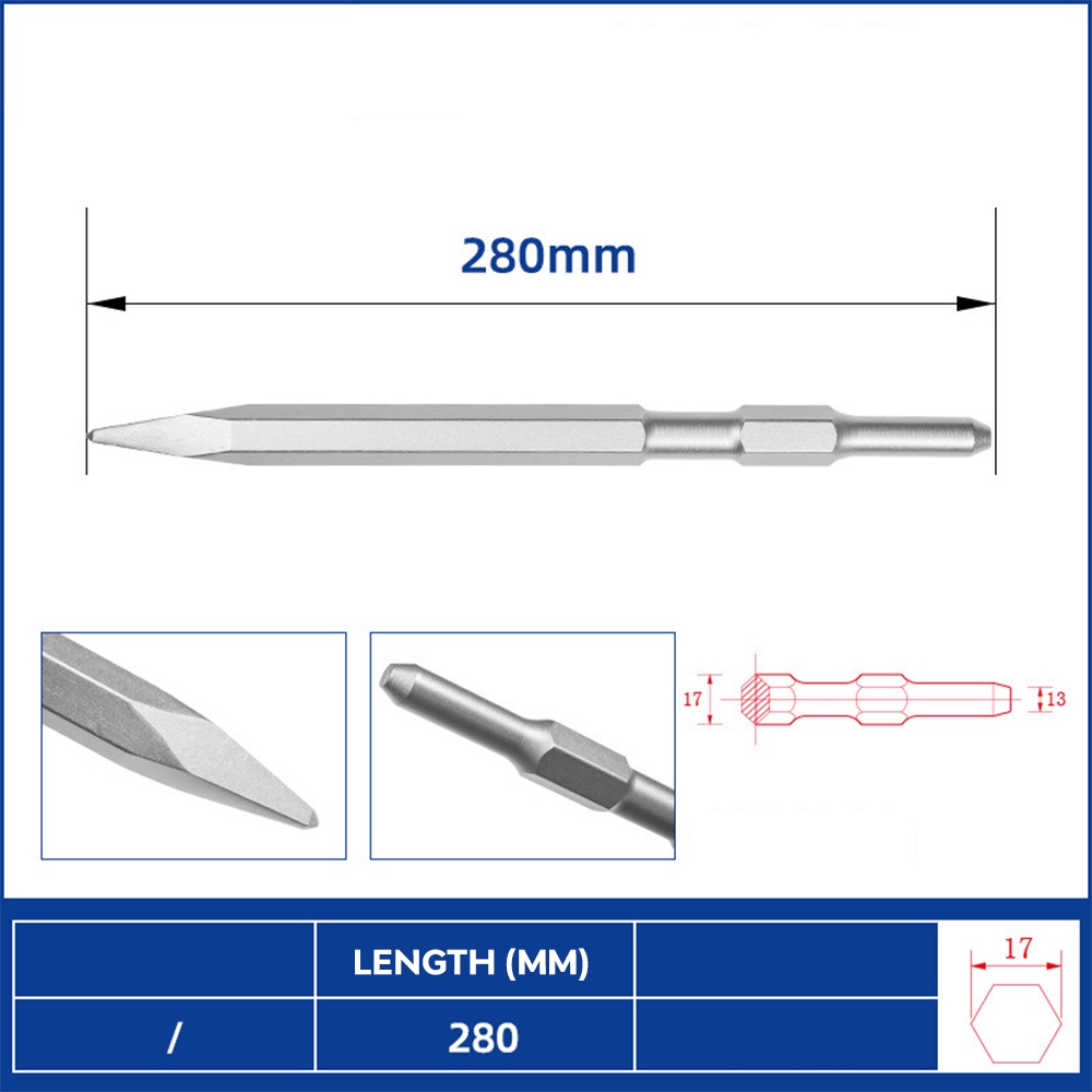 17MM x 280MM Heavy Duty Hex Chisel Point Flat Makita Chisel 0810 For Electric Demolition Hammer Hacker