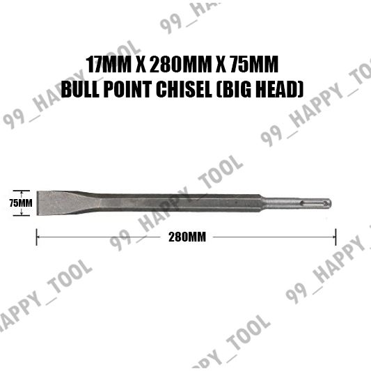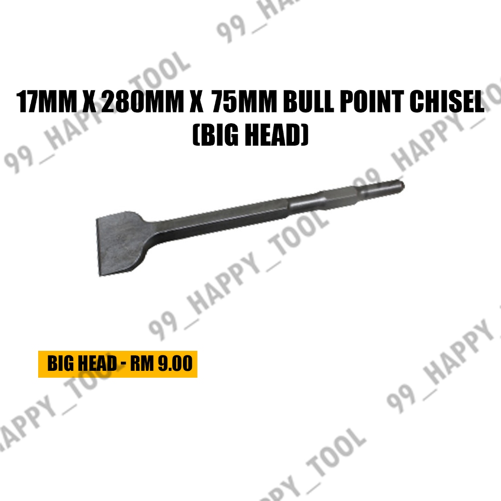 17MM x 280MM x 75MM Bull Point Chisel (Big Head)