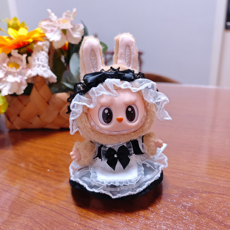 17cm Pendant Labubu Doll Dress Cute Labubu Doll Clothes Black Maid Uniform Suit Cartoon Doll Hoodie Bodysuit Outfit Doll Costume new
