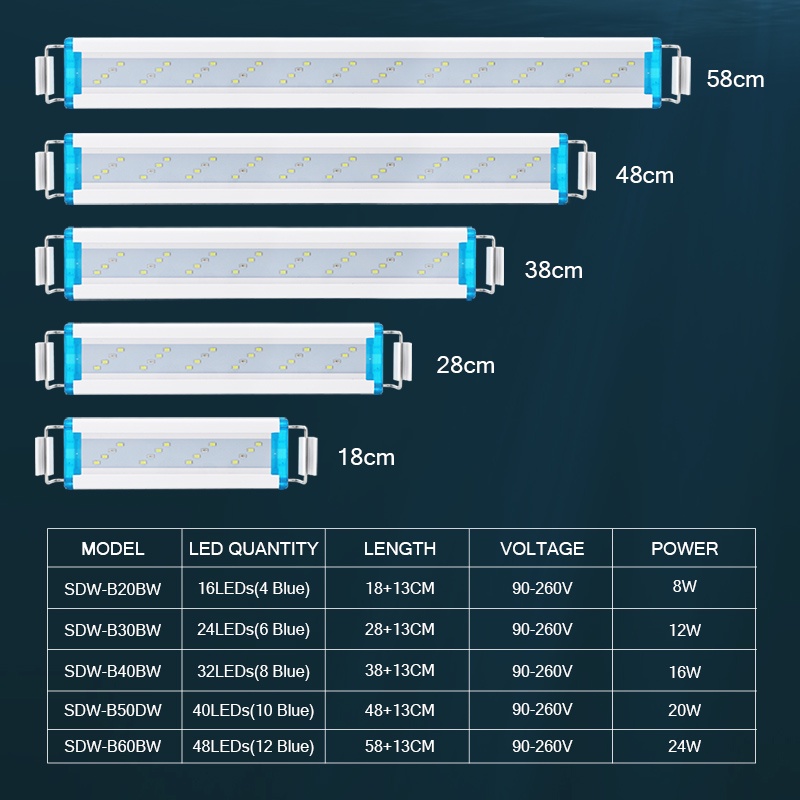 18-72CM Super Slim LED Aquatic Plant Light Lampu Akuarium Extensible Waterproof Clip-on Lamp For Fish Tank