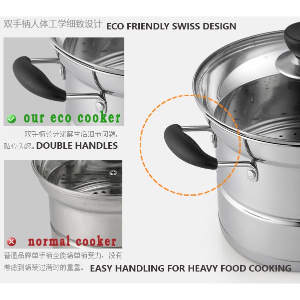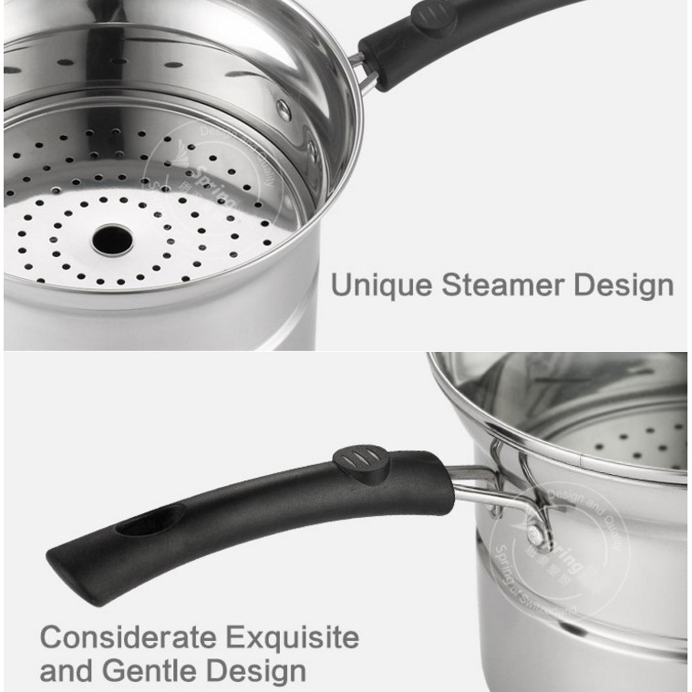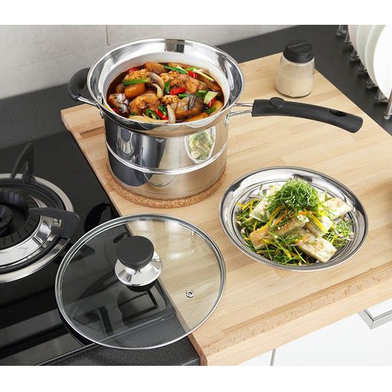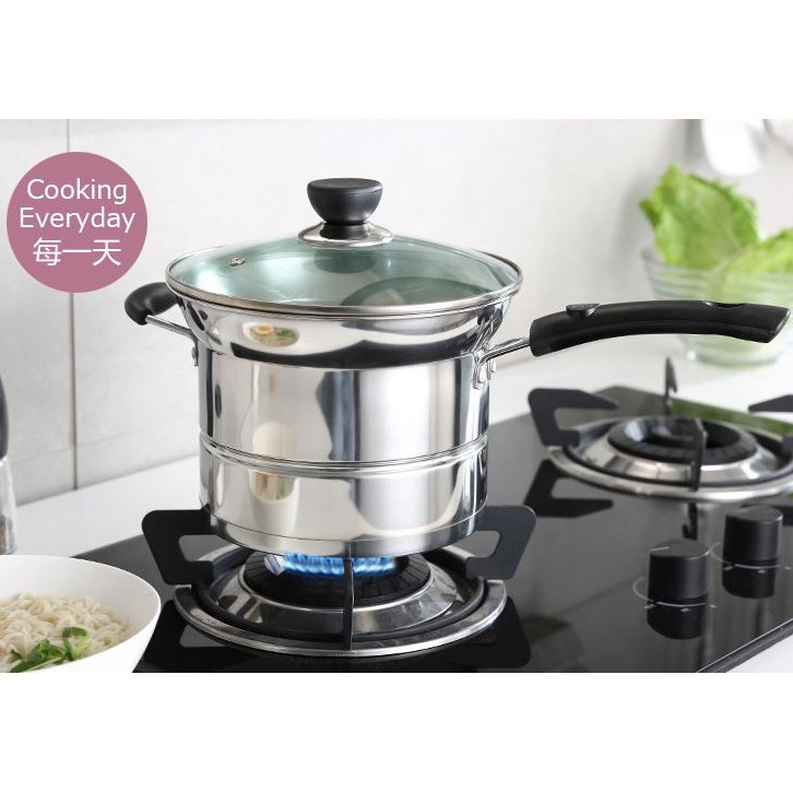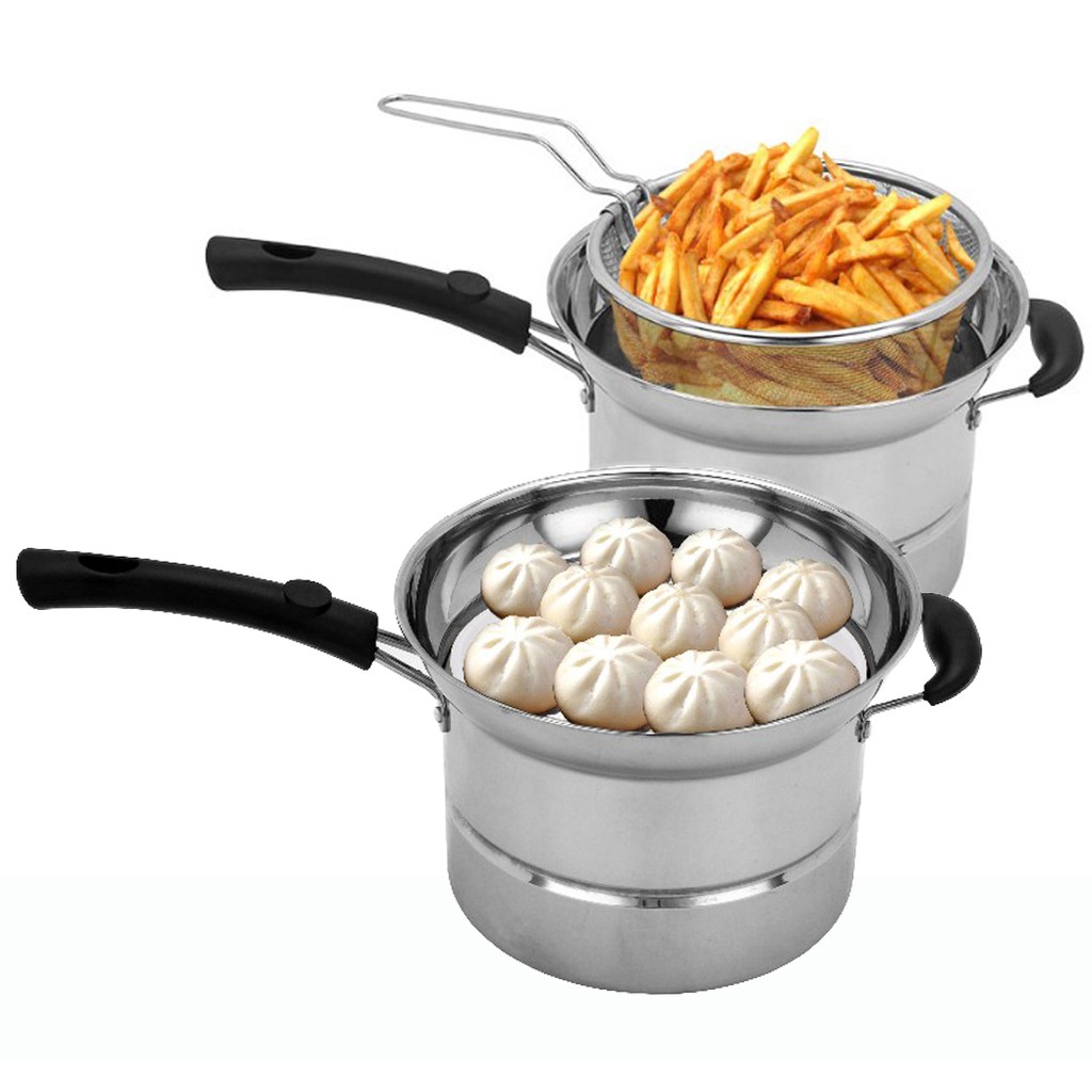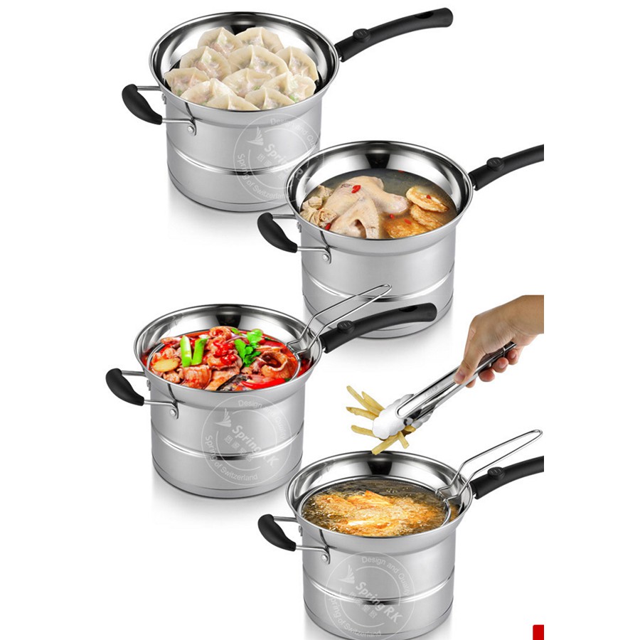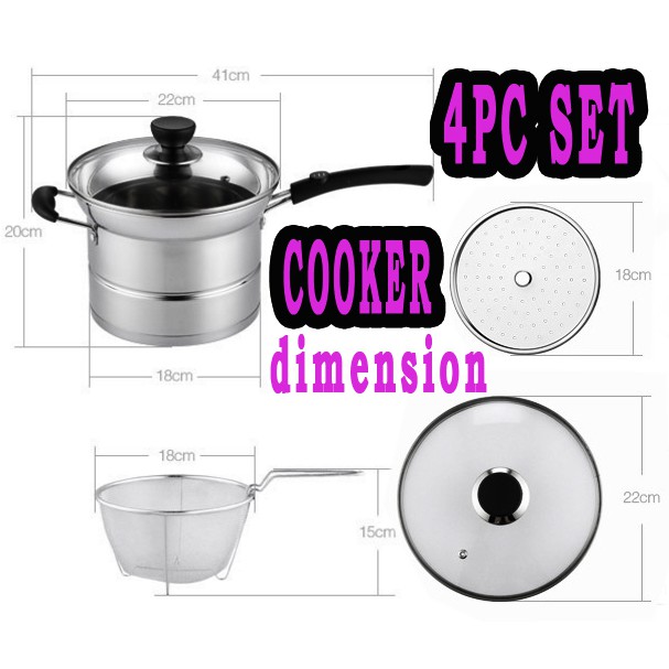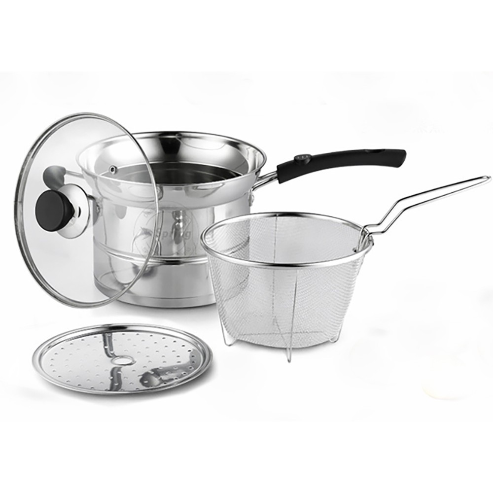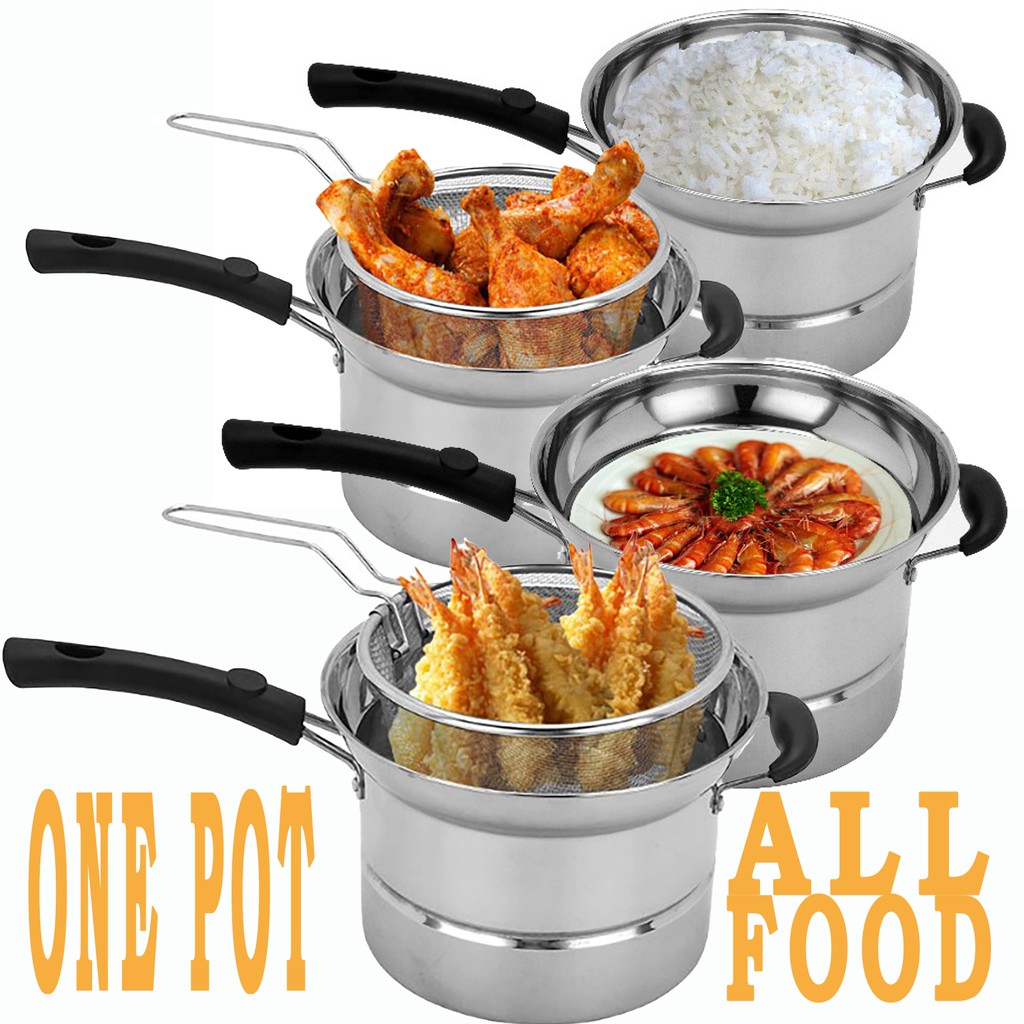 18 CM 4 PC STAINLESS STEEL MULTI USAGE COOKING / DEEP FRY/ STEAM/STEW POT