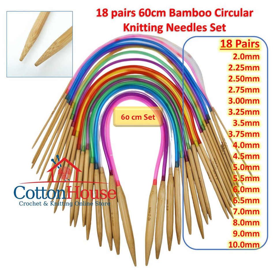 18 pcs Bamboo CN 40cm 60cm 80cm 120cm Circular Knitting Needles Set Jarum Kait