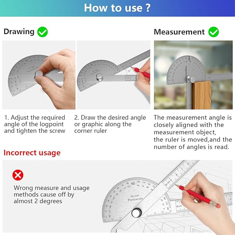 180 Degree Protractor / Stainless Steel Angle Finder / Angle Gauge / Adjustable Half-Round Indexing Gauge