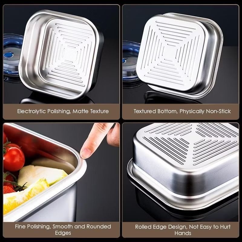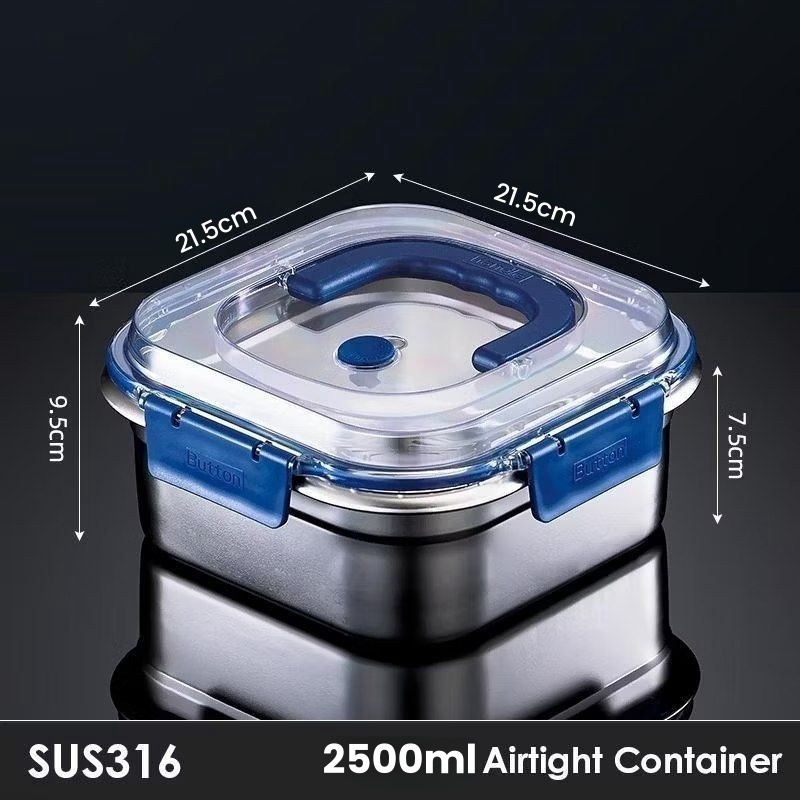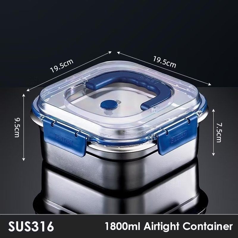 1800/2500ml Single Layer Stainless Steel Container Box With Lid Food Storage Lunch Box With Handle