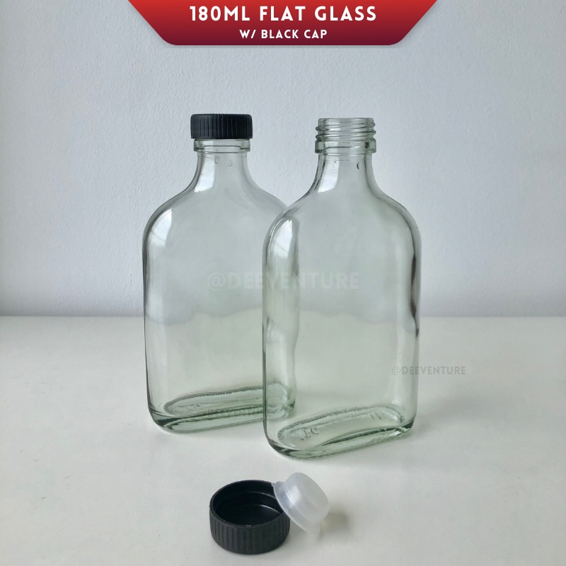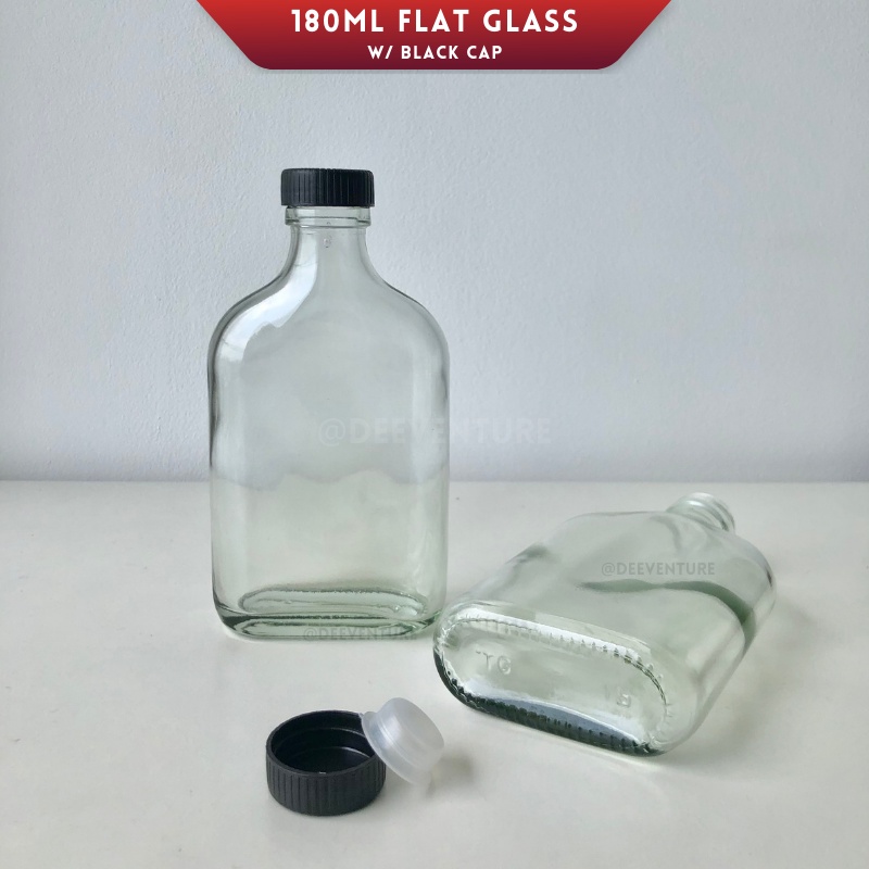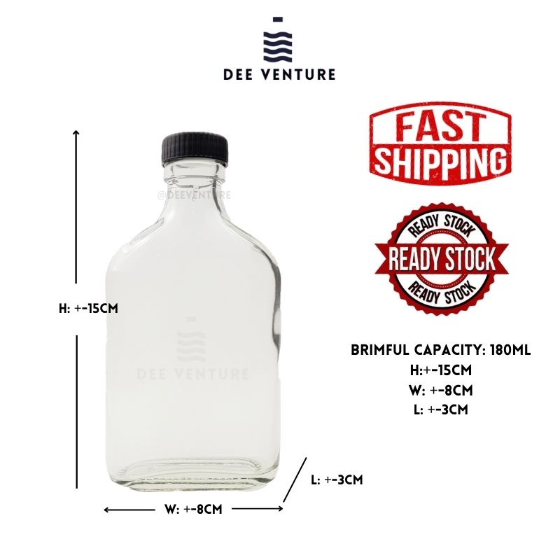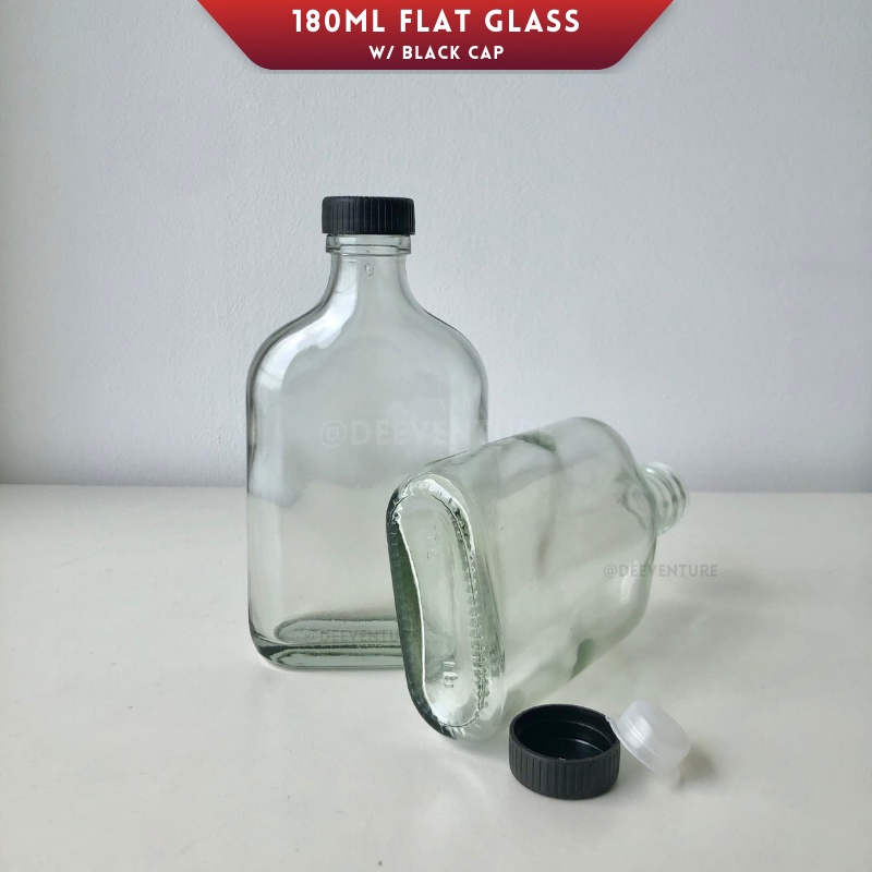 180ml Glass Bottle | Flat Water Bottle for Cold Brew Coffee Slim Water Bottle/ Botol Kaca Leper Tonik (Wholesale)