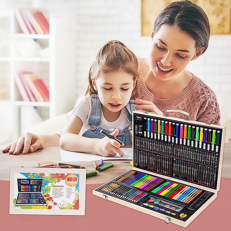 180pcs Drawing Art Set Painting Pen Colour Pencils with Wooden Case Wooden Art Painting Exclusive Set