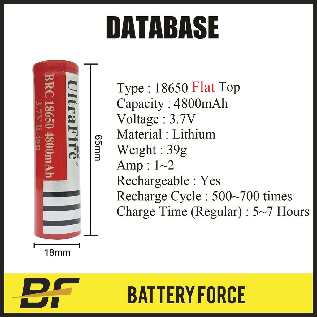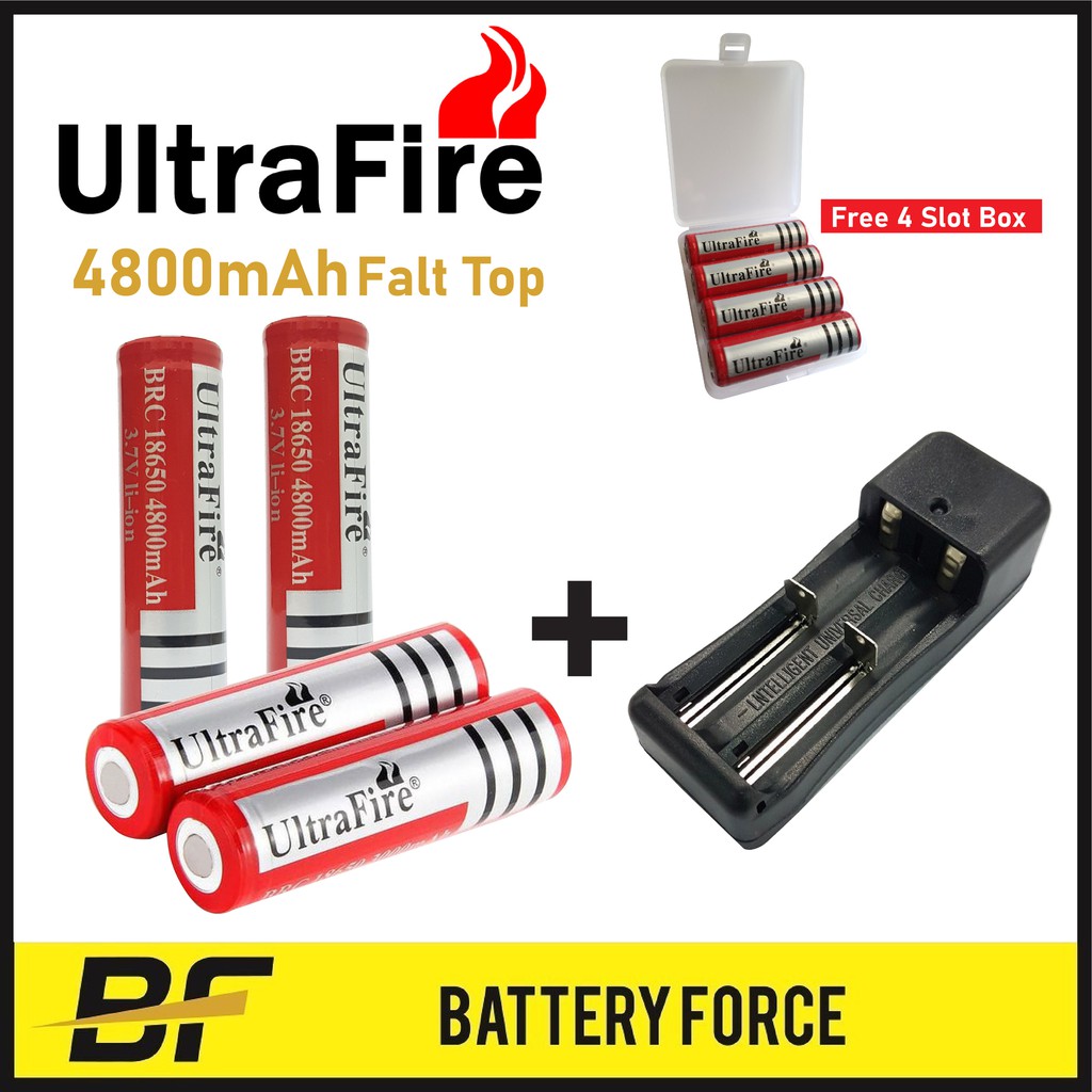 18650 3.7V 4800mAh UltraFire Flat Top Rechargeable Li-ion Vape Lithium Battery With 2 Slot Charger