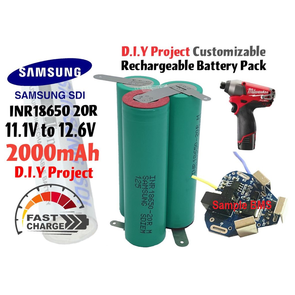 18650 Drill Battery Pack 11.1V 12V 12.6V 2.0Ah 3S1P 2000mAh Lithium Ion Triangle Custom With Spot Welding High Drain
