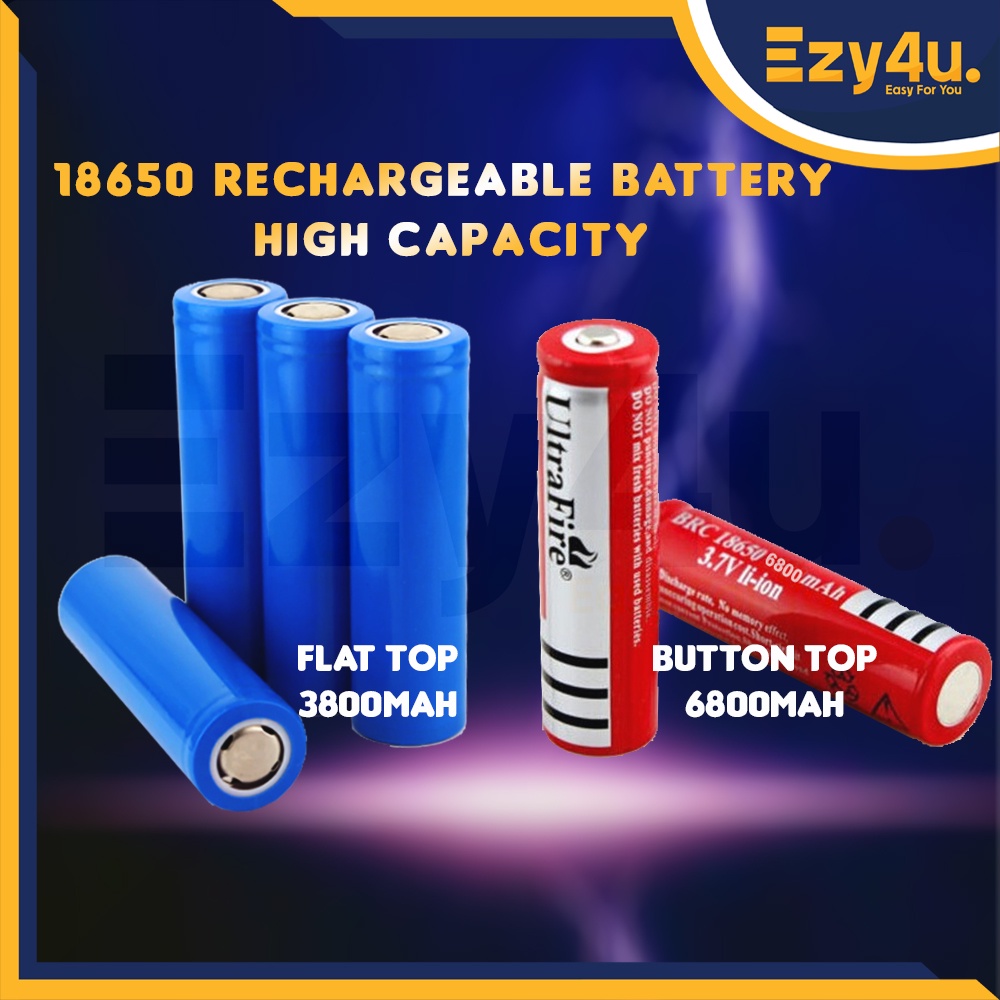 18650 High Capacity 3.7V Button Top and Flat Top Rechargeable Battery Li-ion Lithium Flashlight Check Suhu Bateri