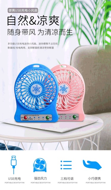 18650 USB mini portable small electric fan rechargeable fan student handheld fan USB mini snowflake portable breeze