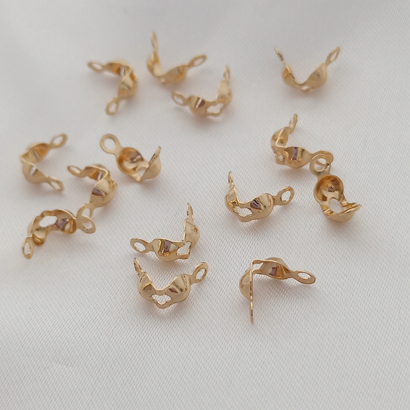 18K Clamshell Bead, Crimp Bead, Tip Knot End Cover, Clamshell End Tip Beads, Clam Shell Open Loop, DIY
