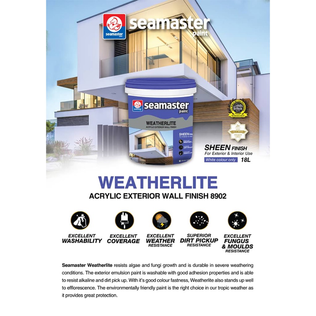 18L Seamaster Paint Weatherlite Acrylic Exterior Wall Finish 9102 ( White Colour only)