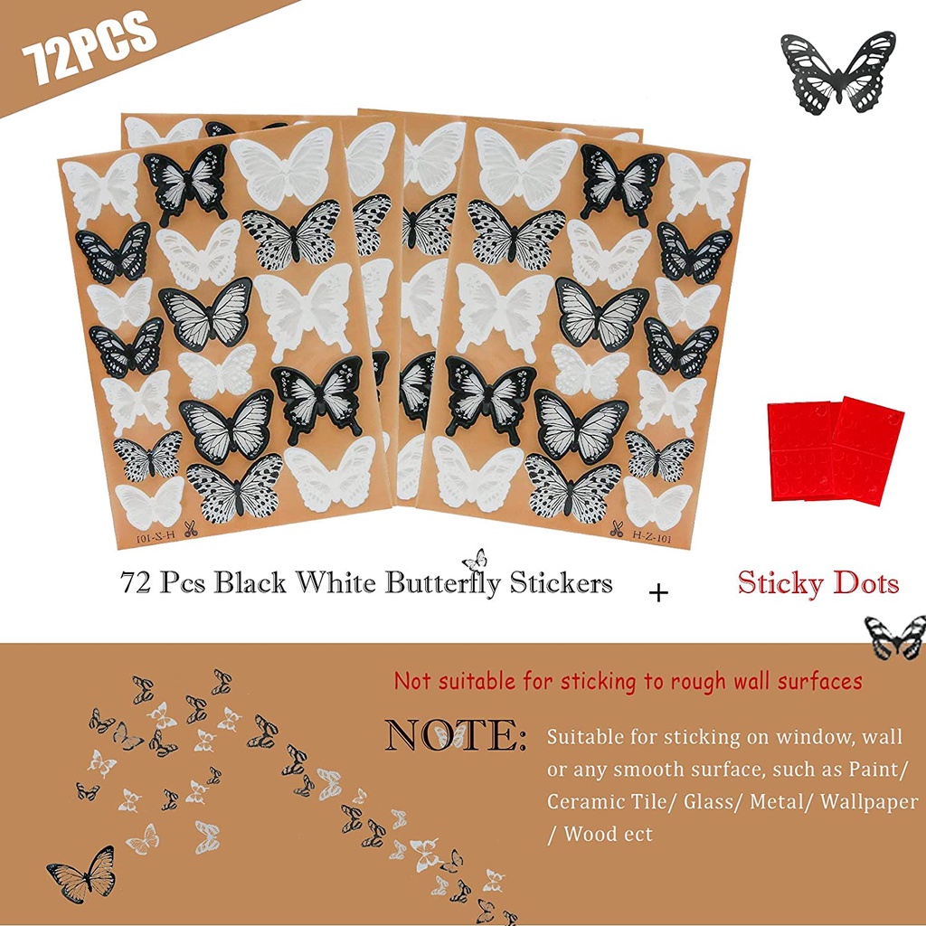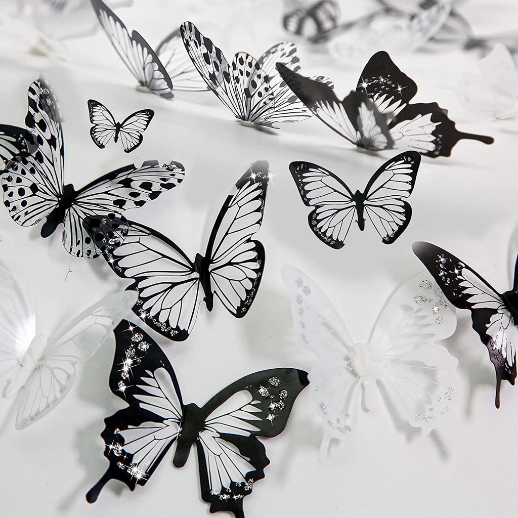 18Pcs Butterfly Wall Stickers Glitter Removable 3D Mural Butterflies Living Room Kids Bedroom Wall Decals Party Birthday Wedding Decoration Black White