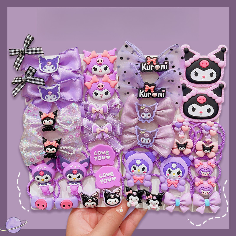 18Pcs Children Hair Clip Set Kawaii Kuromi Kitty My Melody Cinnamoroll Cute Girls Hair Tie Rubber Band Hair Clips Accessories