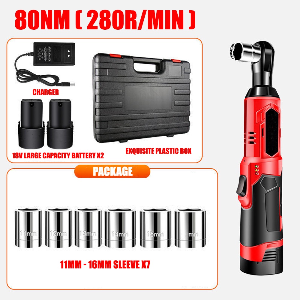 18V 80NM CORDLESS ELECTRIC RATCHET WRENCH RECHARGEABLE SCAFFOLDING TORQUE SOCKETS AND DOUBLE BATTERY